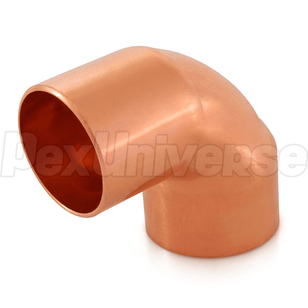 This male sweat x female sweat elbow connects 1-1/2" copper fitting to 1-1/2" copper pipe at a 90-degree angle.