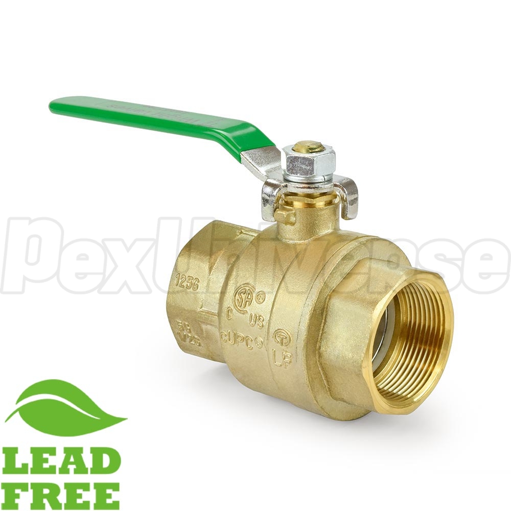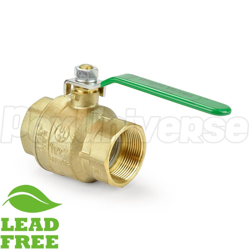 1-1/2" NPT Threaded Brass Ball Valve, Full Port (Lead-Free)