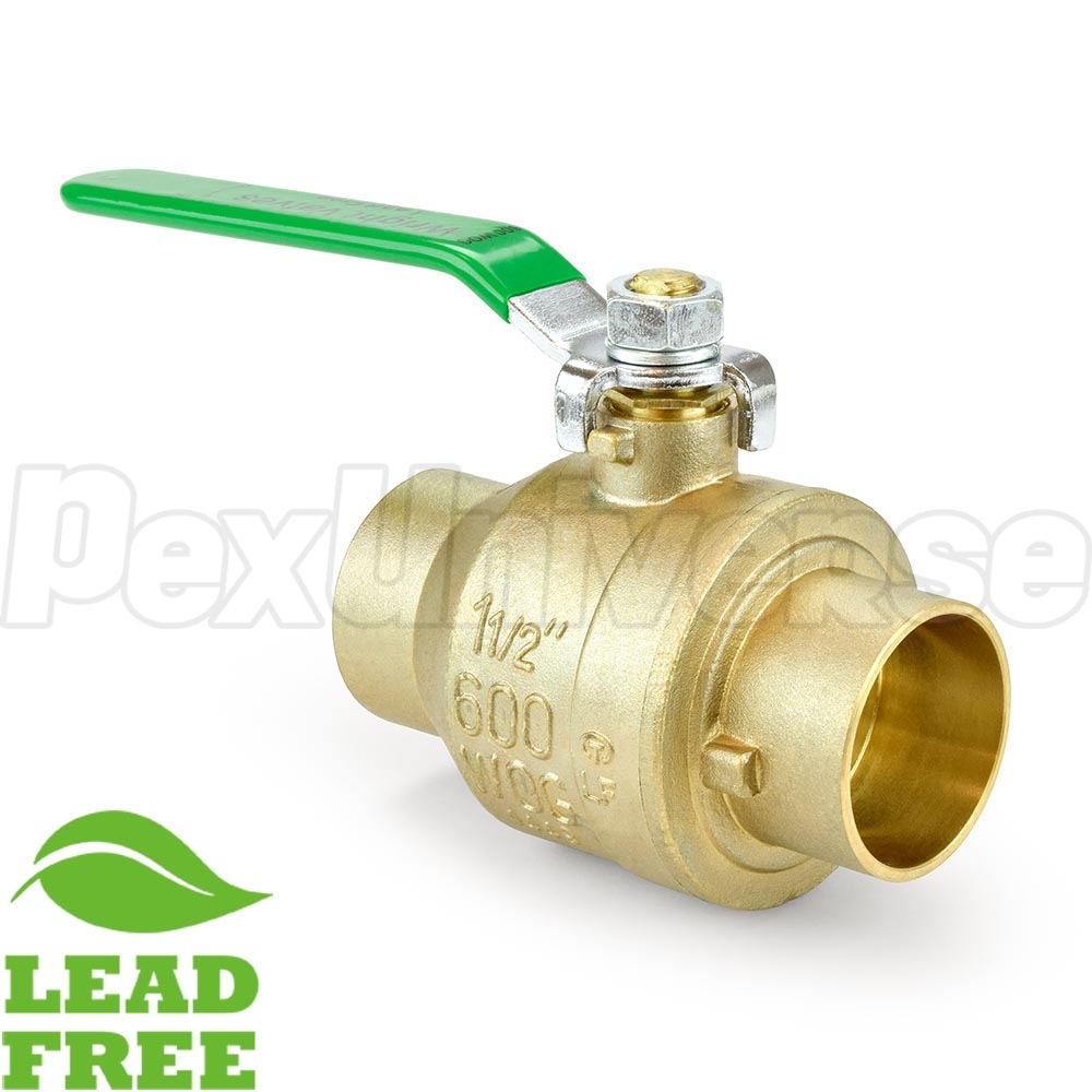 1-1/2" Sweat (Solder) Brass Ball Valve, Full Port (Lead-Free)