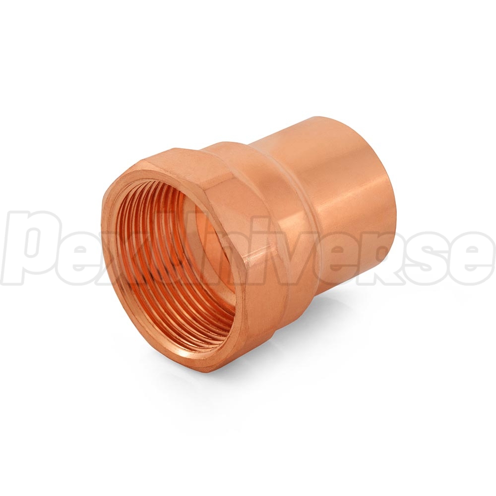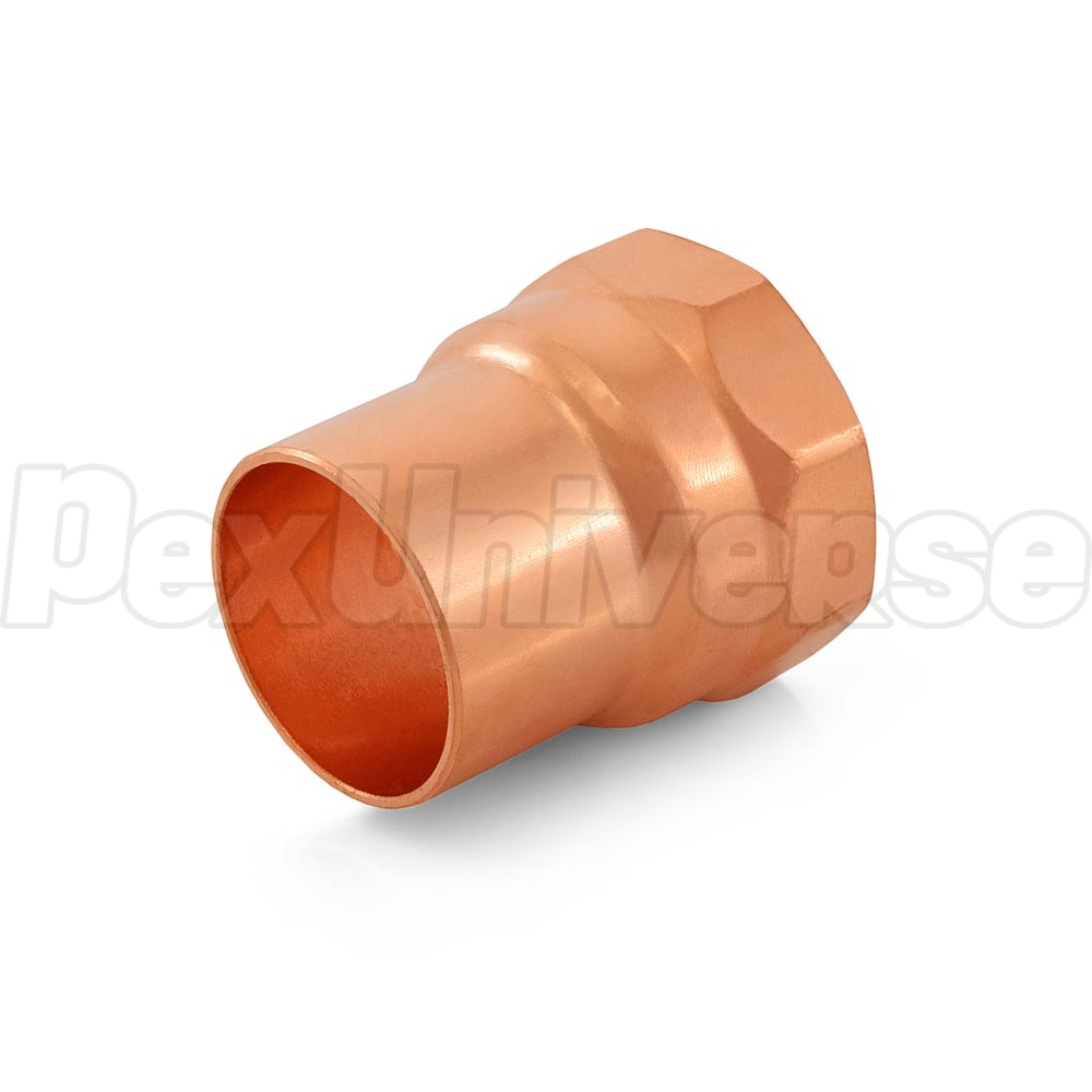 This FPT x female sweat fitting connects 1-1/4" copper pipe to 1-1/4" male threaded pipe or fitting.