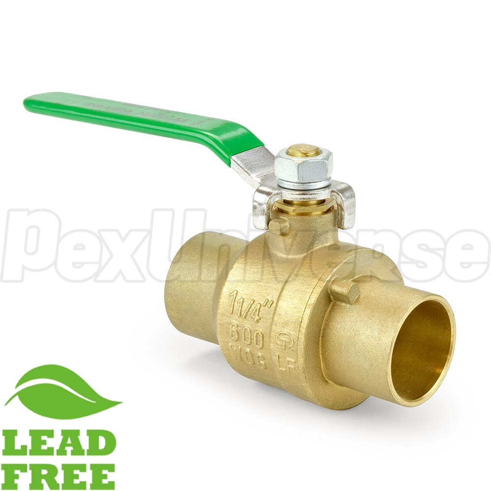 1-1/4" Sweat (Solder) Brass Ball Valve, Full Port (Lead-Free)