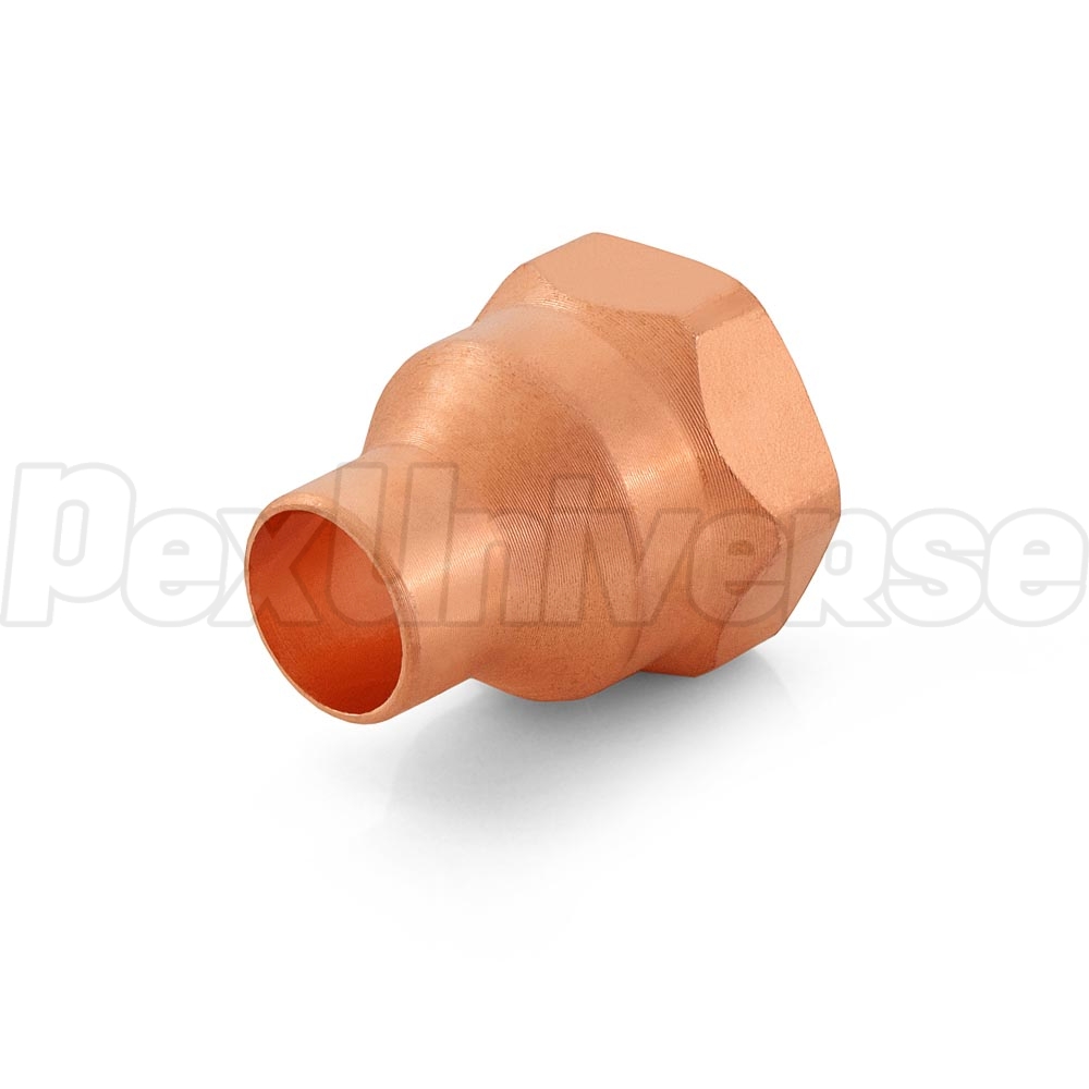 This FPT x female sweat fitting connects 1/2" copper pipe to 3/4" male threaded pipe or fitting.