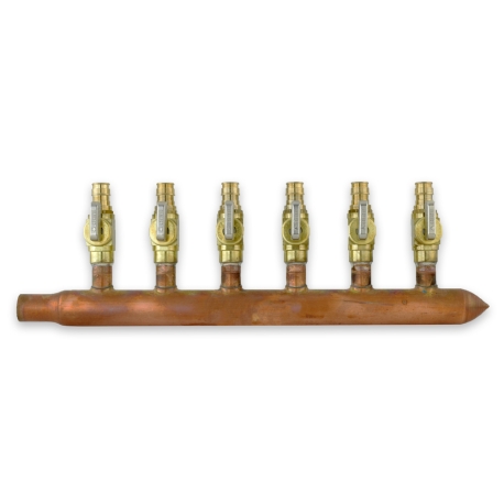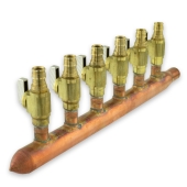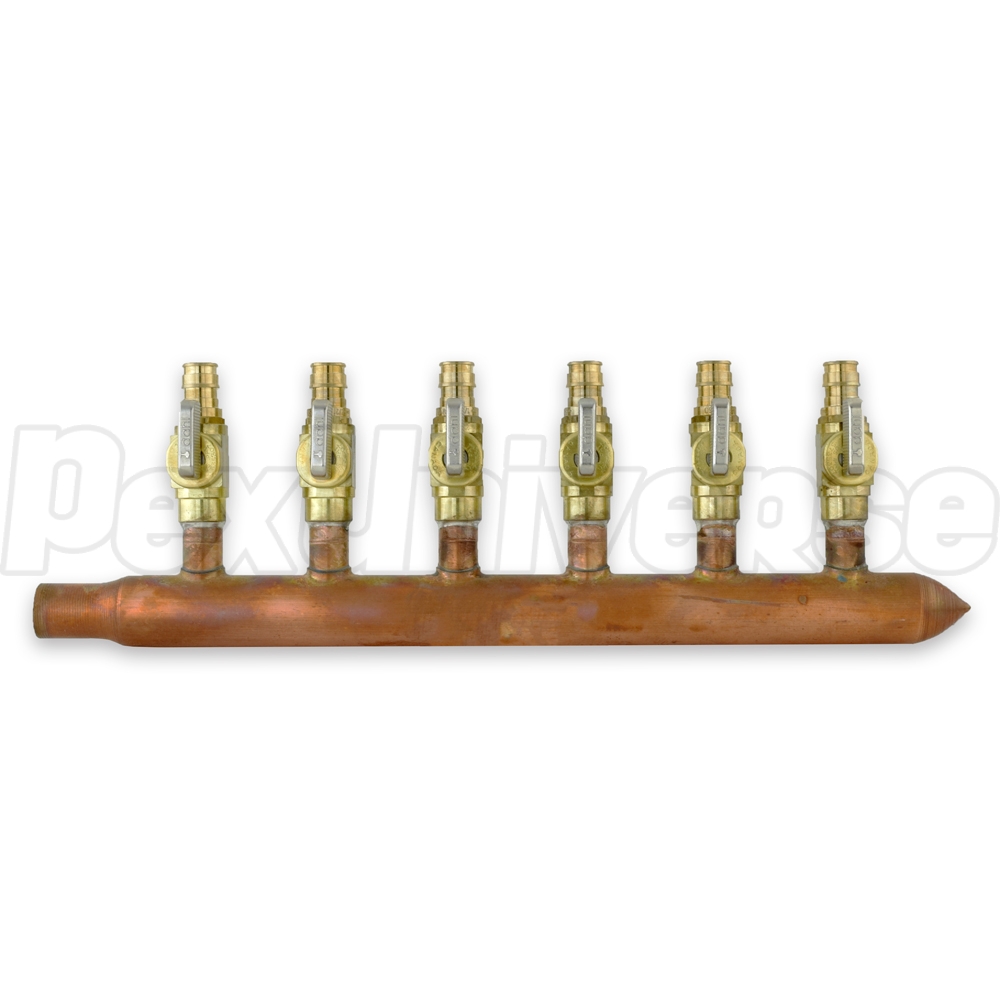 6-branch Copper Manifold w/ 1/2" PEX-A (F1960) Valves, 3/4" Male Sweat x Closed, Right-hand, LF