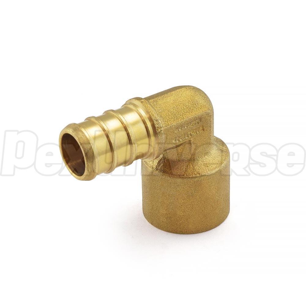 PEX x Copper Pipe (Female Sweat) Elbow is used to transition between PEX tubing and a copper pipe at a 90-degree angle.