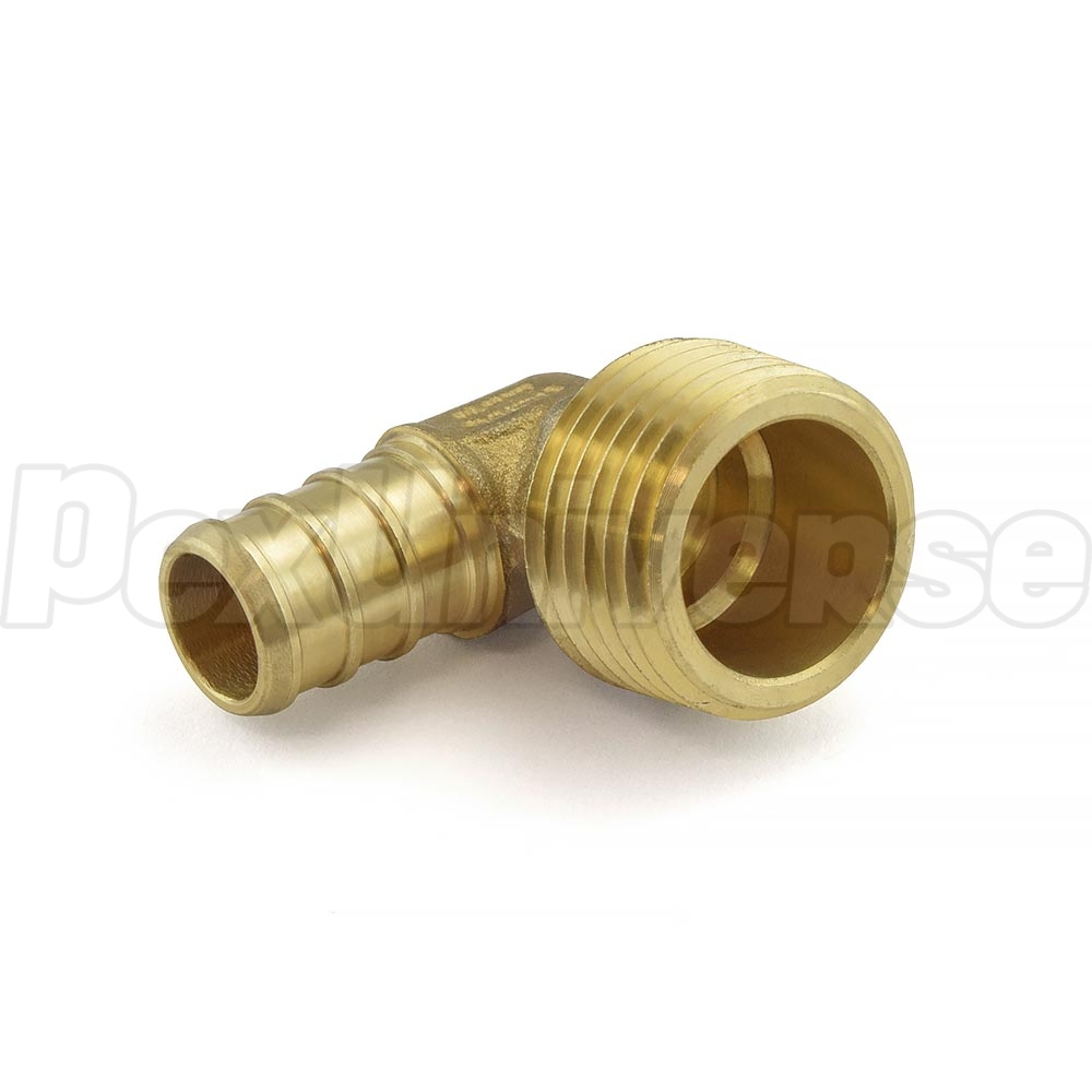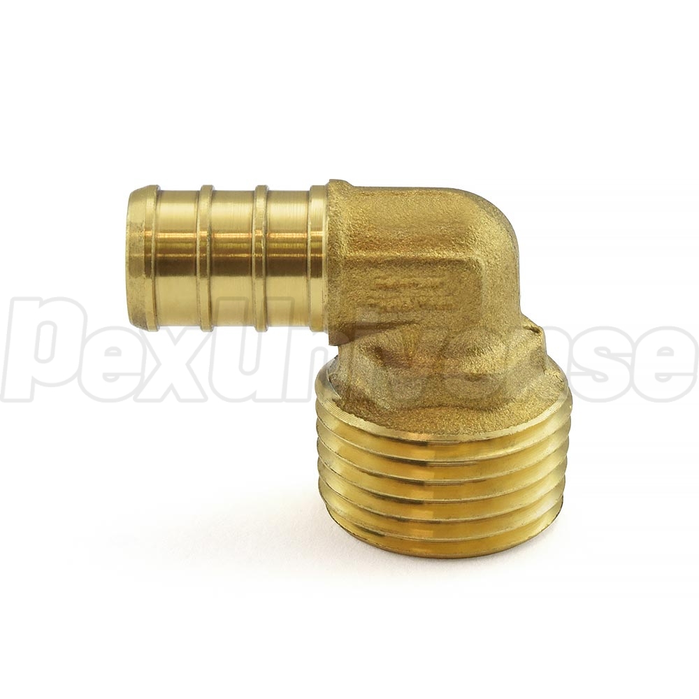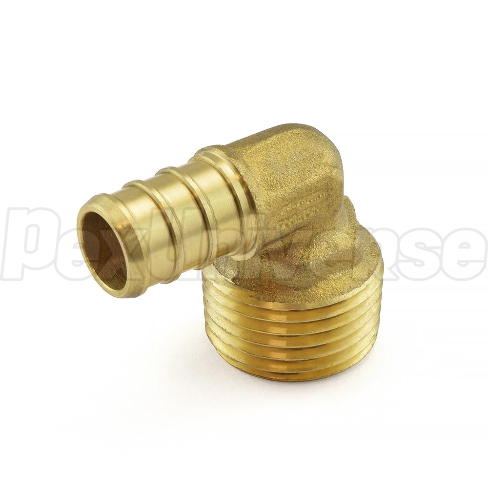 PEX x Male Threaded Elbow is used to transition between PEX tubing and a female threaded fitting at a 90-degree angle.