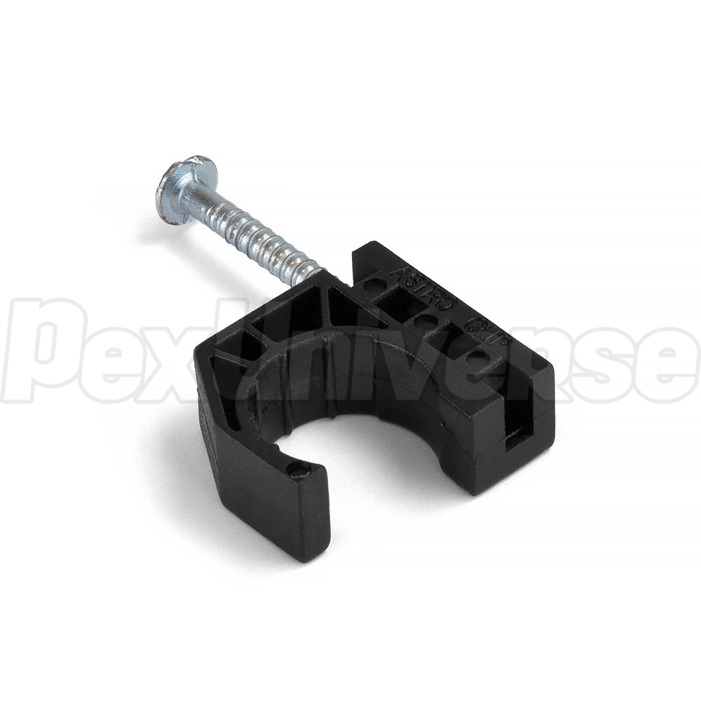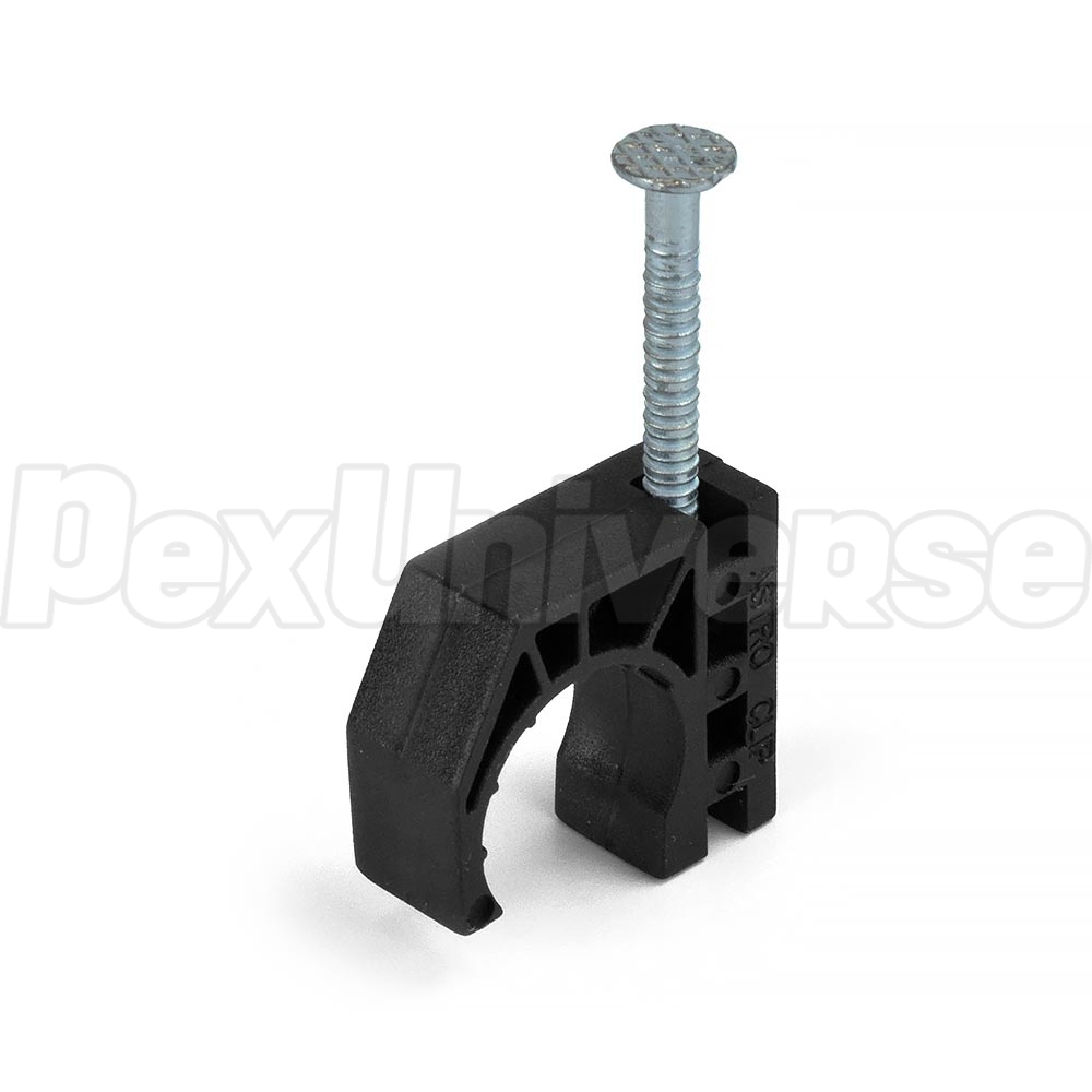 Tube Talons (J-Clamps) with Nail. Compatible with 1/2" PEX tubing, 1/2" copper pipes and 1/2" CPVC pipes. Can be used to secure tubing / piping to wooden surfaces,such as joists, studs, beams, subfloor, etc. Designed to offset the tubing from the mounting surface and eliminate or reduce noise problems associated with thermal changes in the plumbing/heating system. Protruding nail length (wood penetration depth) is 5/8".