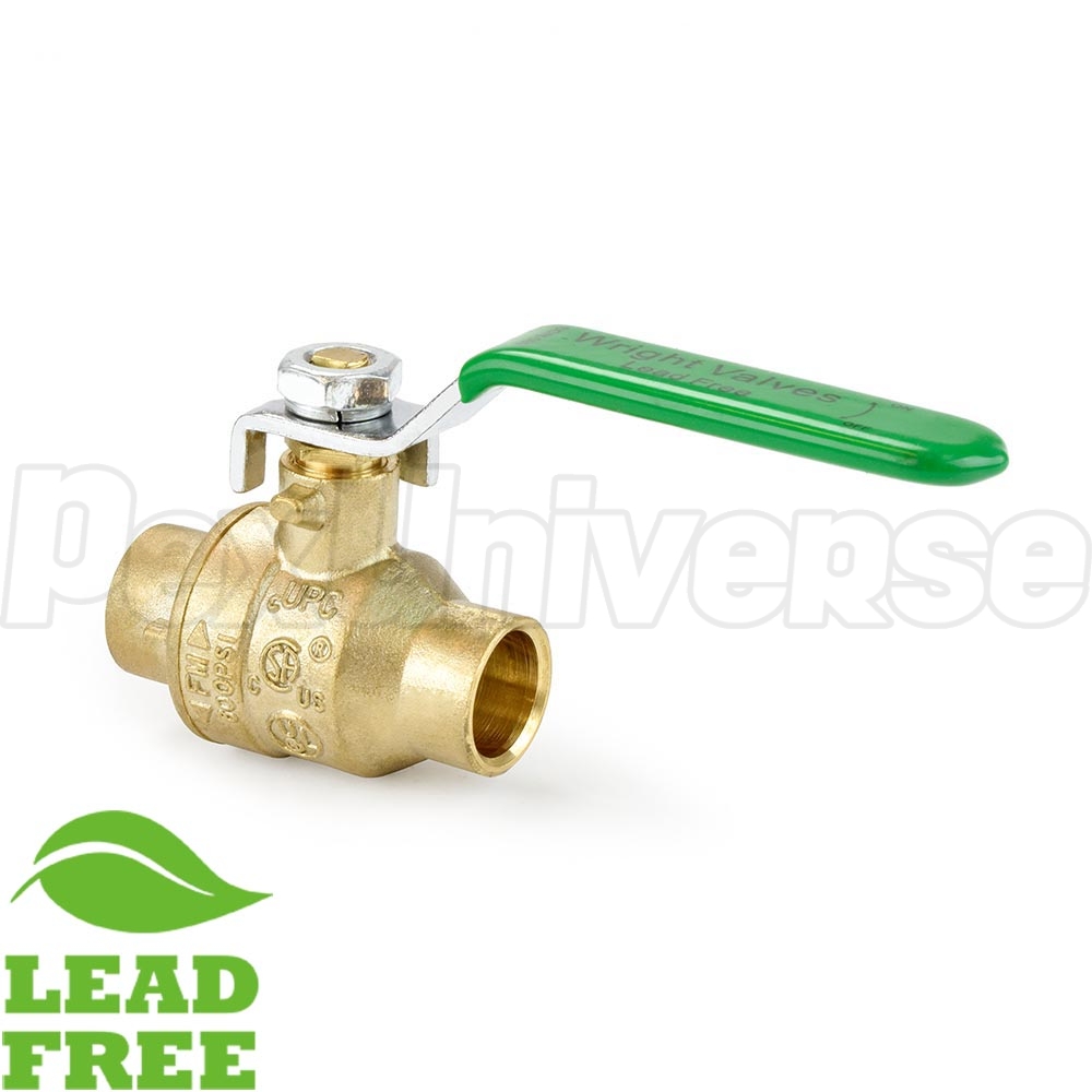 1/2" Sweat (Solder) Brass Ball Valve, Full Port (Lead-Free)
