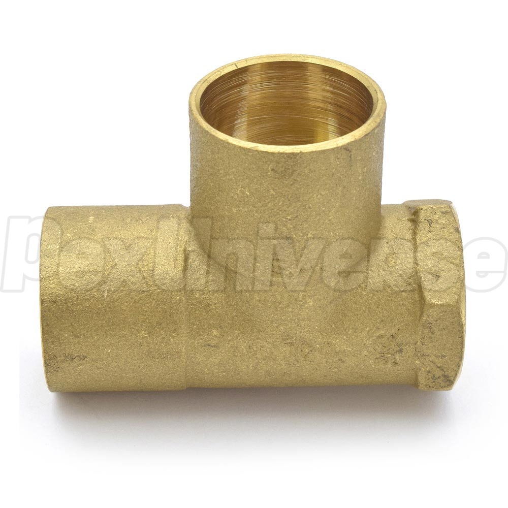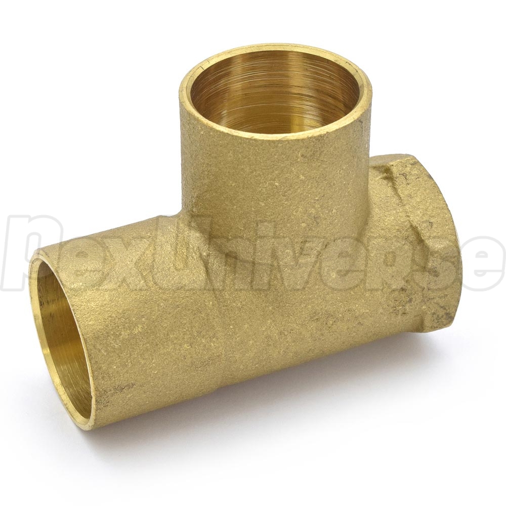 1" Sweat x 3/4" FPT (FIP) x 1" Sweat cast brass tee (side x side x center) is often used in plumbing or heating application for installation of a pressure/temperature gauge, an air vent or other equipment. 3/4" FPT outlet can also accommodate a standard drain valve.