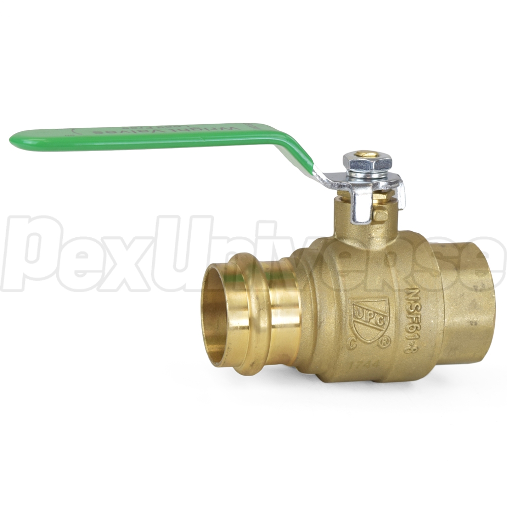 1" copper press x 1" female NPT threaded lead-free brass ball valve with 1/4-turn handle. Press connection is the same style as Viega ProPress and Apollo XPress. Approved for potable water applications.