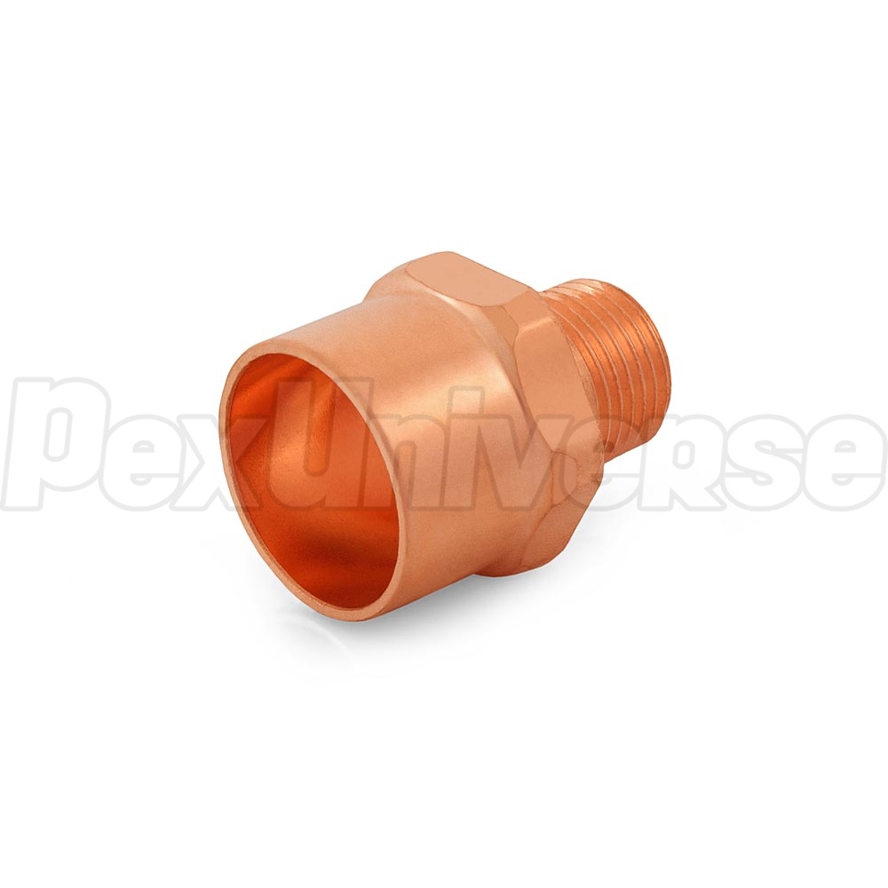 This MPT x female sweat fitting connects 1" copper pipe to 1/2" female threaded fitting.