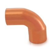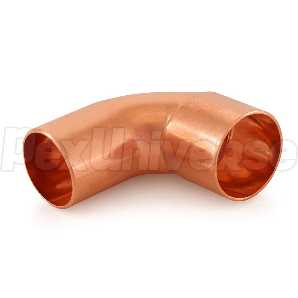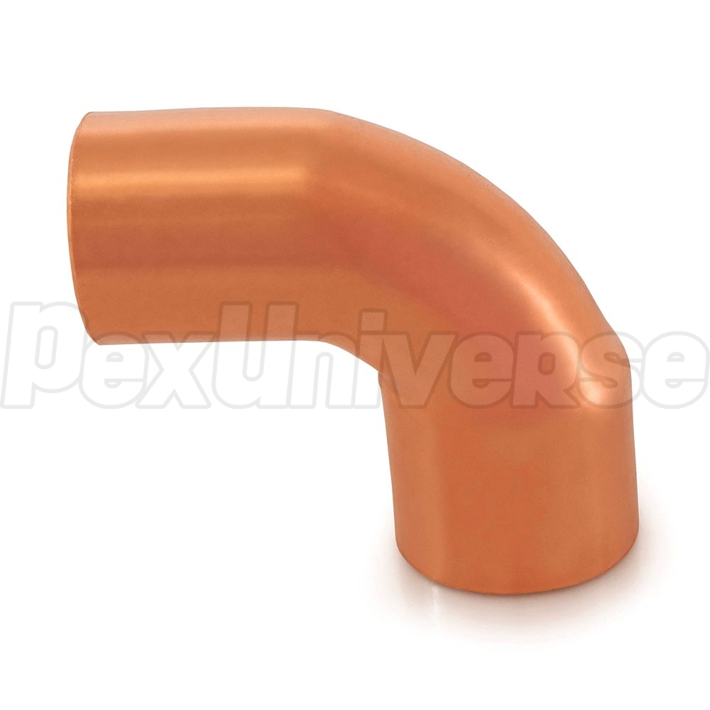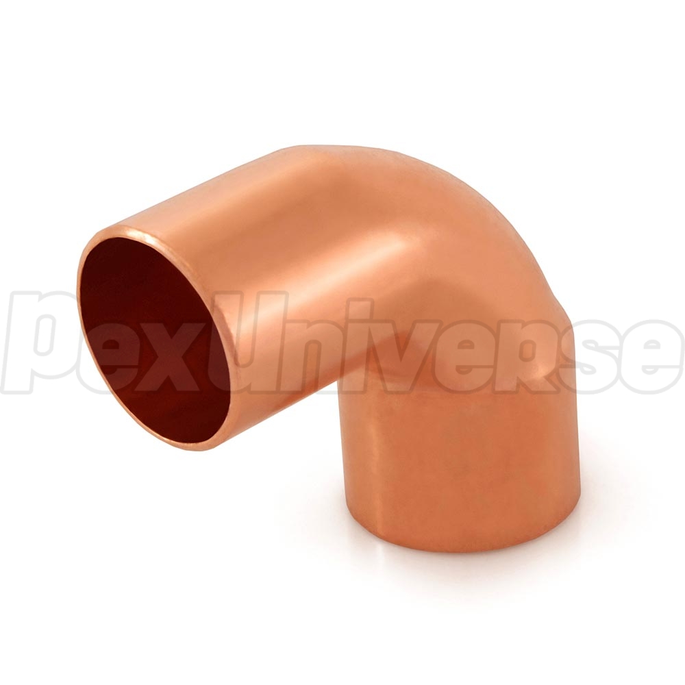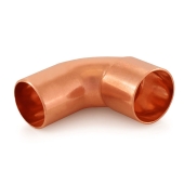 This male sweat x female sweat elbow connects 1" copper fitting to 1" copper pipe at a 90-degree angle.