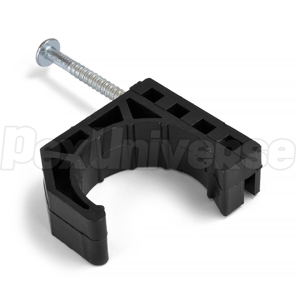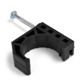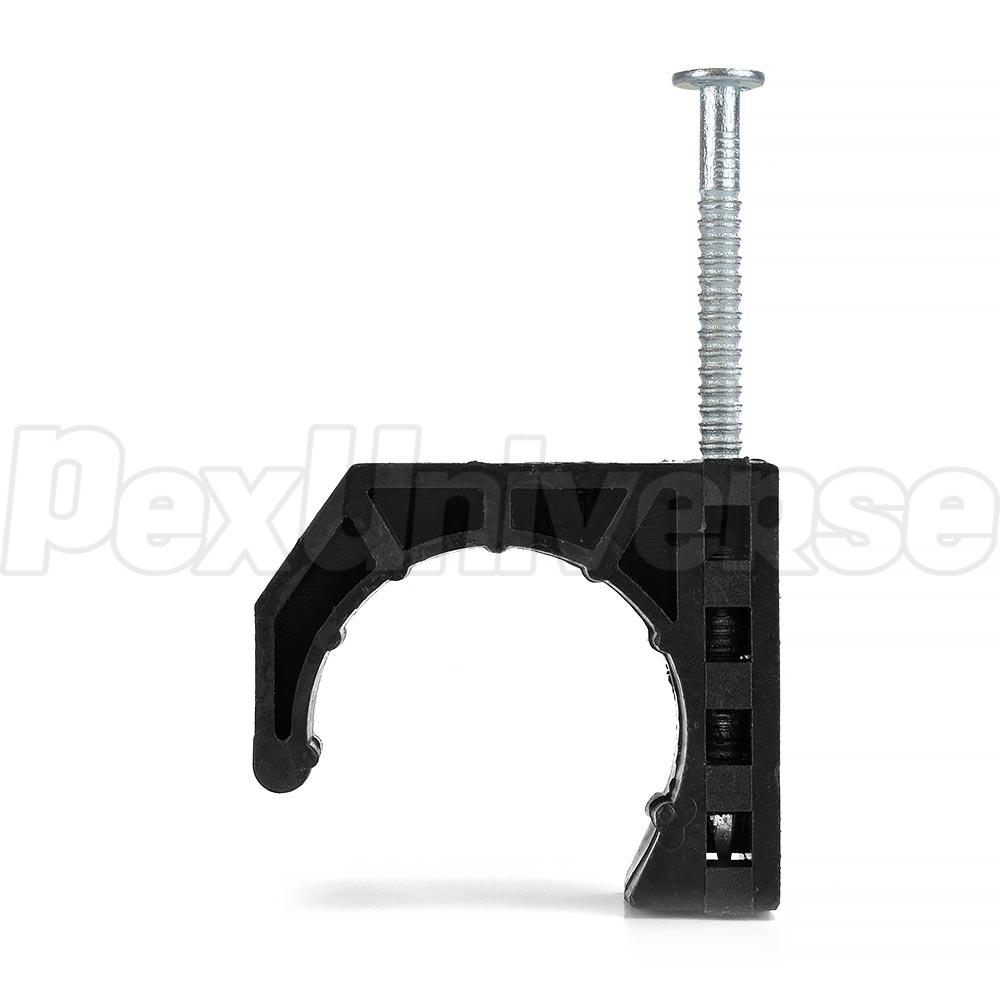 Tube Talons (J-Clamps) with Nail. Compatible with 1" PEX tubing, 1" copper pipes and 1" CPVC pipes. Can be used to secure tubing / piping to wooden surfaces,such as joists, studs, beams, subfloor, etc. Designed to offset the tubing from the mounting surface and eliminate or reduce noise problems associated with thermal changes in the plumbing/heating system. Protruding nail length (wooden surface penetration depth) is 1-1/8".