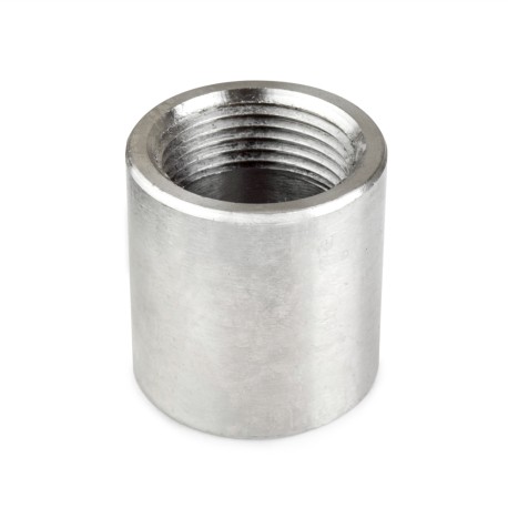 This stainless steel full (merchant) coupling connects two 1" NPT threaded pipes together in a straight line.