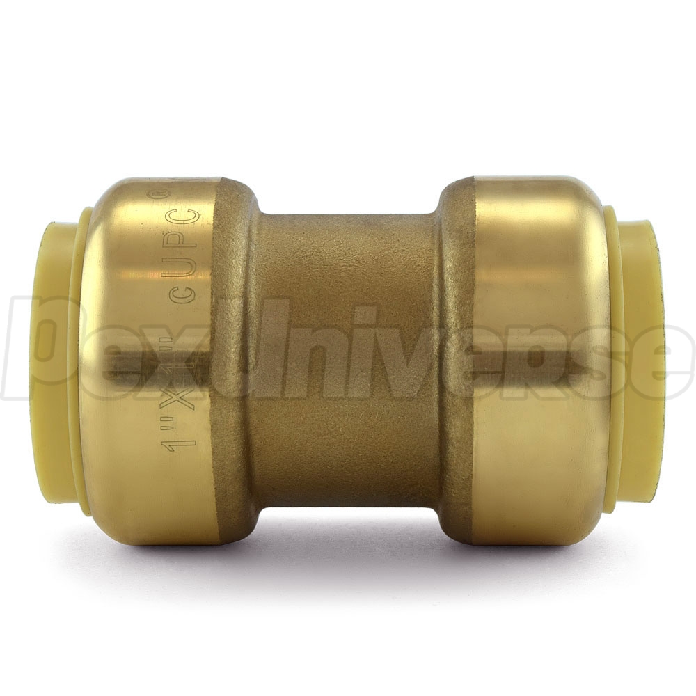 This coupling connects two 1" CTS pipes together in a straight line. Includes (2) PEX stiffeners.