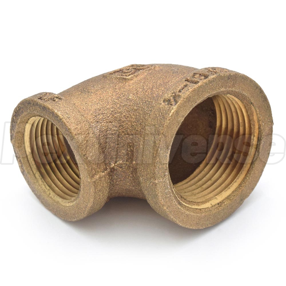 90-degree 1" x 3/4" FPT (FIP) threaded reducing elbow connects 1" threaded pipe to 3/4" threaded pipe in a straight line.