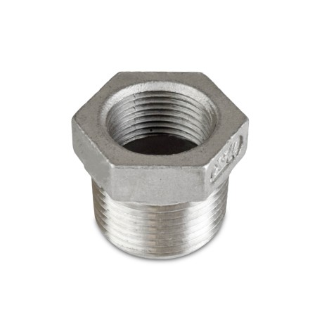 1" x 3/4" 304 Stainless Steel Hex Bushing, MNPT x FNPT threaded