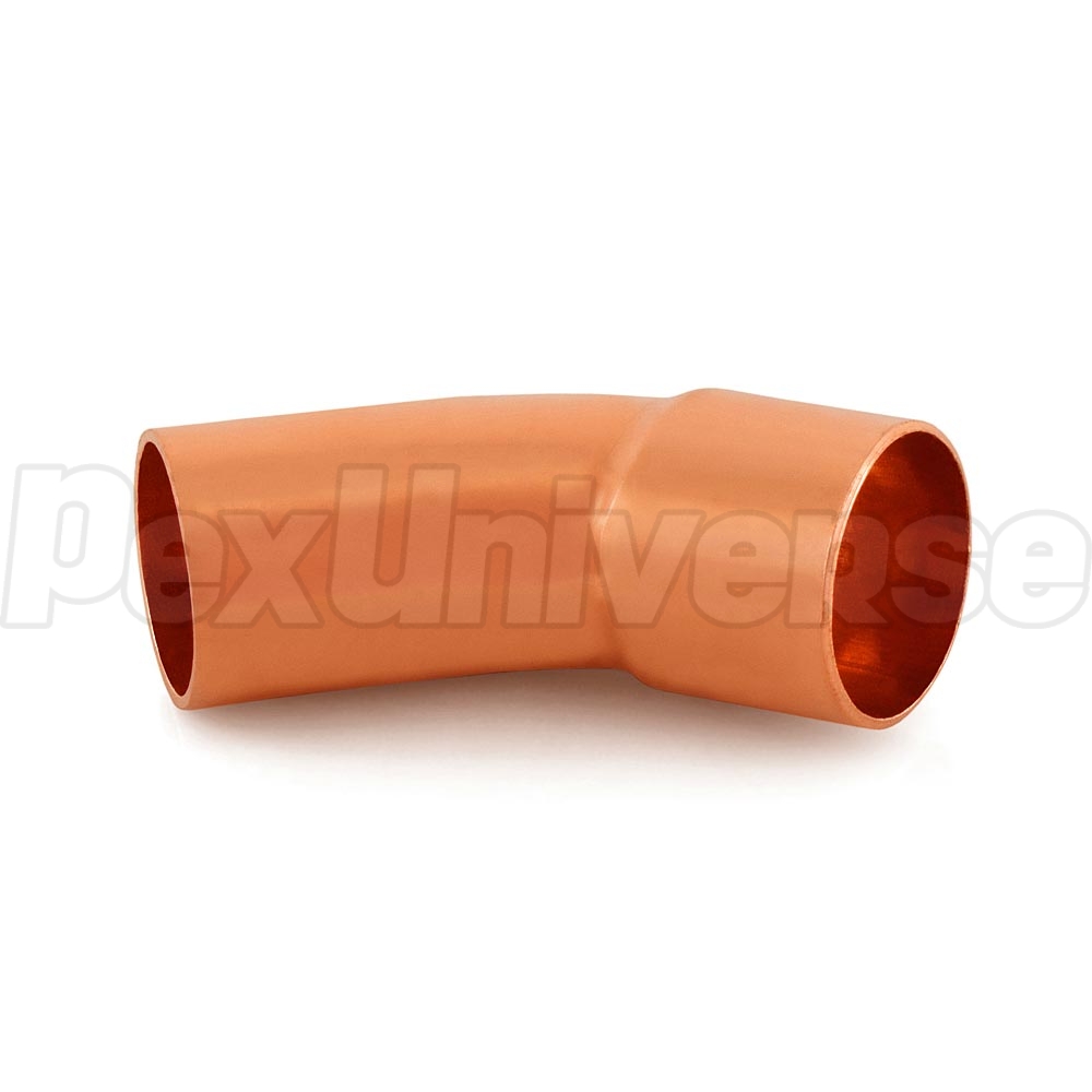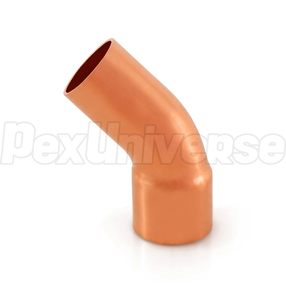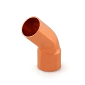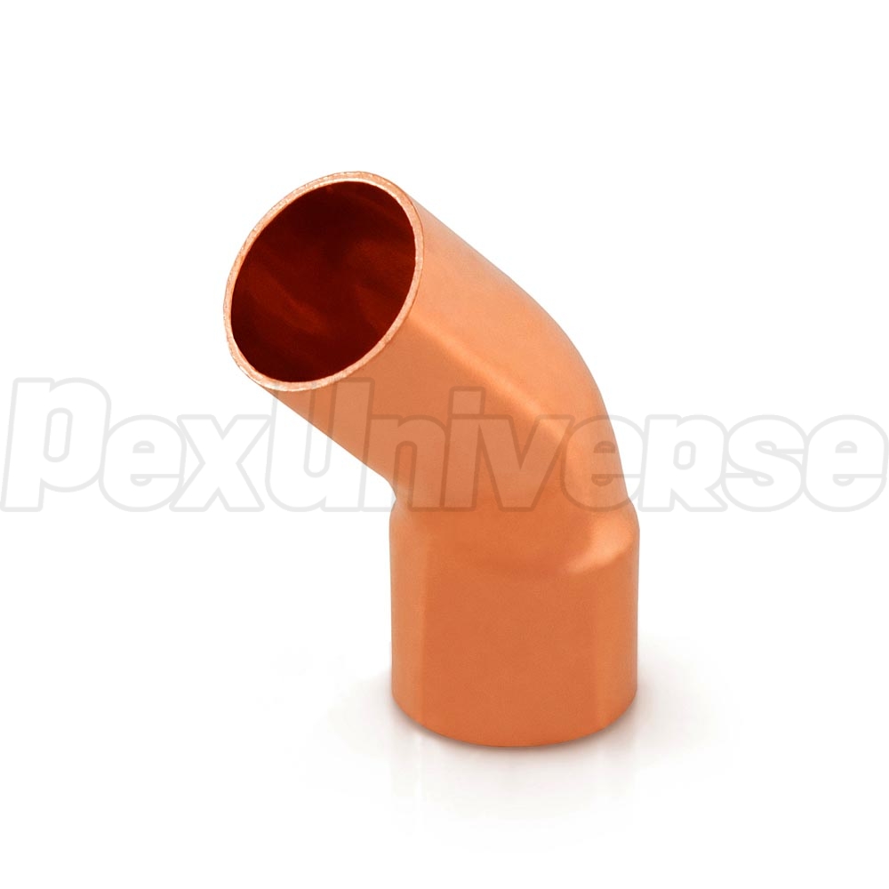 This male sweat x female sweat elbow connects 3/4" copper fitting to 3/4" copper pipe at a 45-degree angle.
