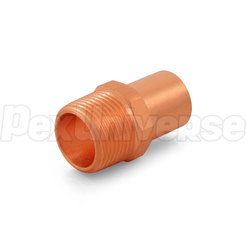This MPT x male sweat fitting connects 3/4" copper fitting to 3/4" female threaded fitting.