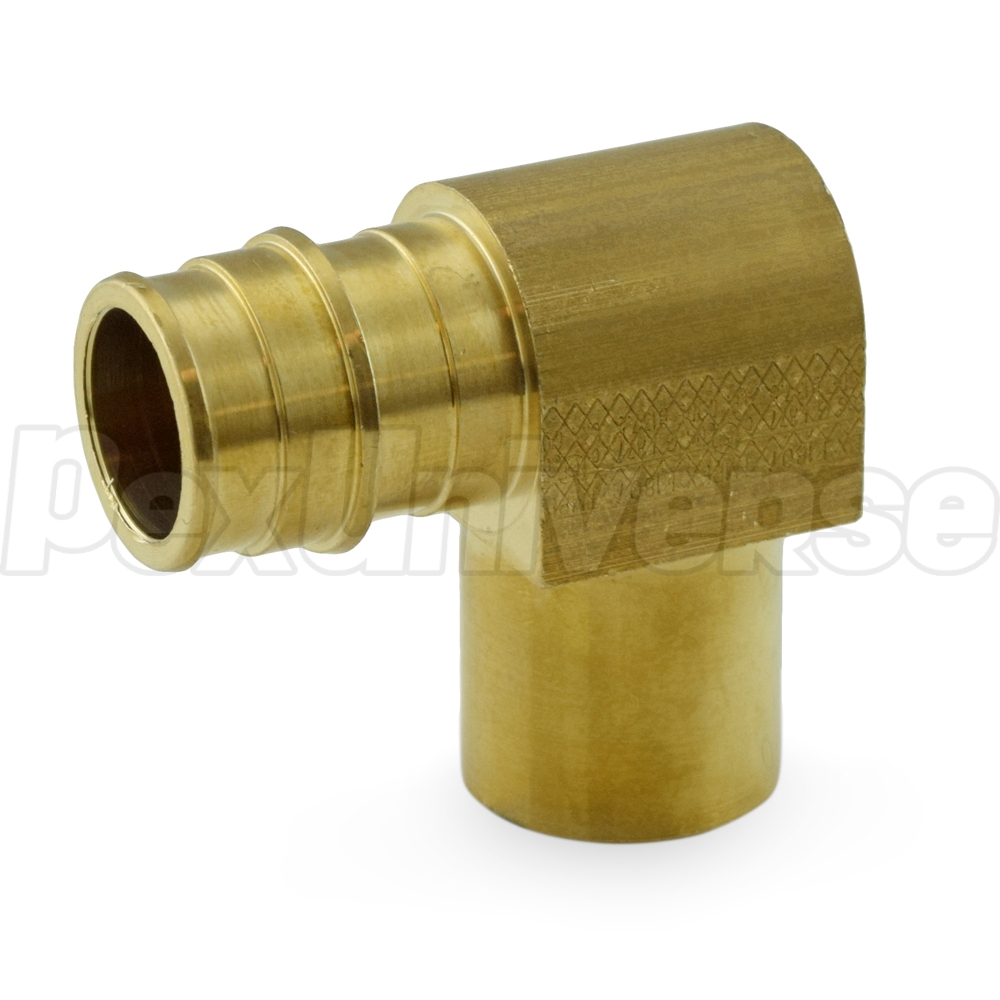 This fitting allows to transition from 3/4" PEX-A tubing to 3/4" copper fitting at a 90-degree elbow, using PEX expansion method. Compatible with all brands or PEX-A tubing (Uponor/Wirsbo hePEX & AquaPEX, Sioux Chief, Mr. PEX, Rehau, etc.). Sweat part of the fitting must be soldered first.