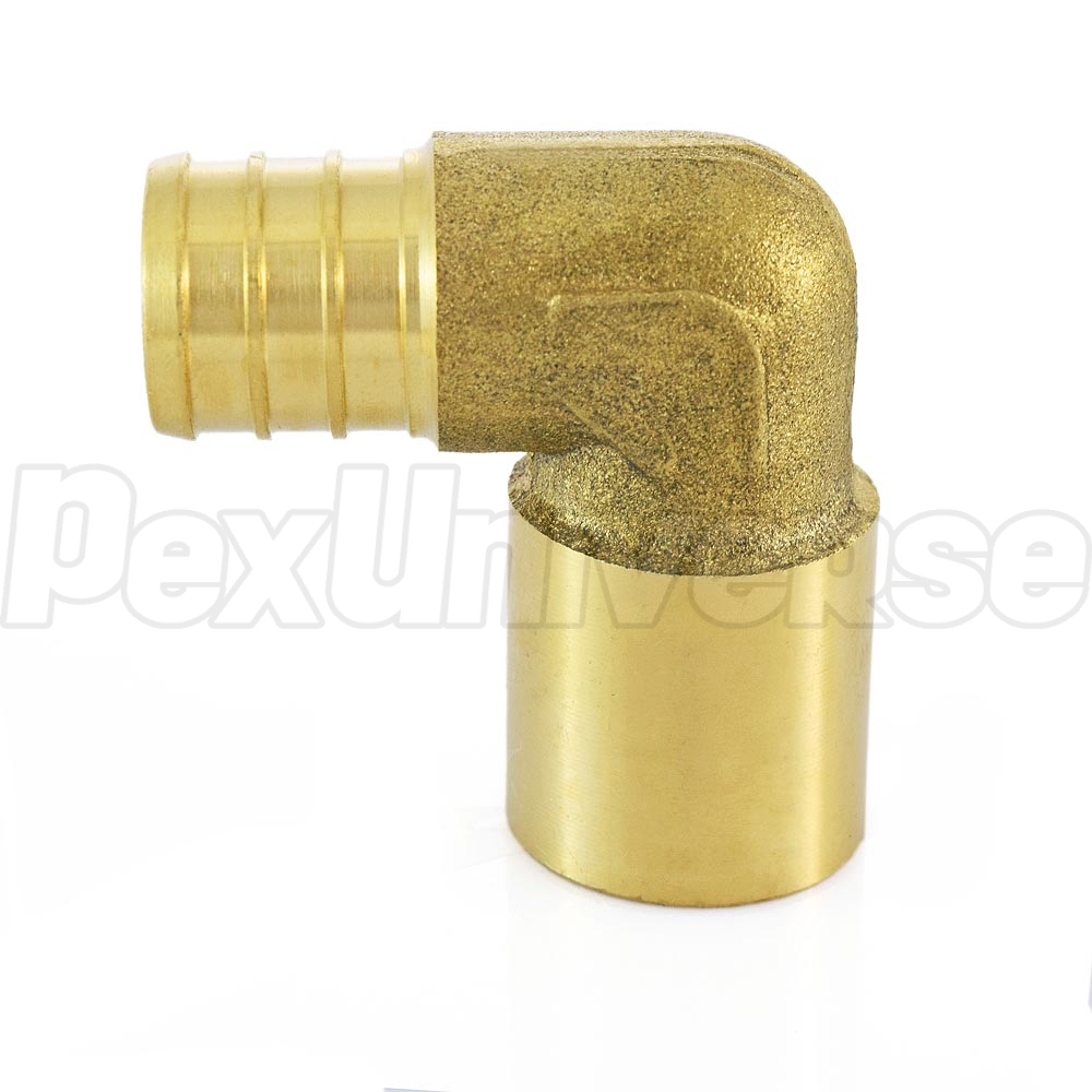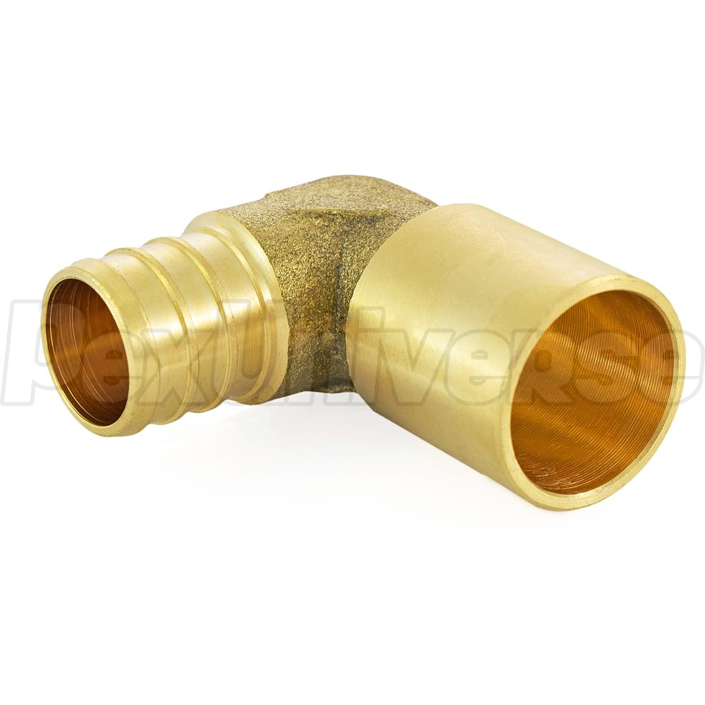 PEX x Copper Fitting (Male Sweat) Elbow is used to transition between PEX tubing and copper fittings at a 90-degree angle.