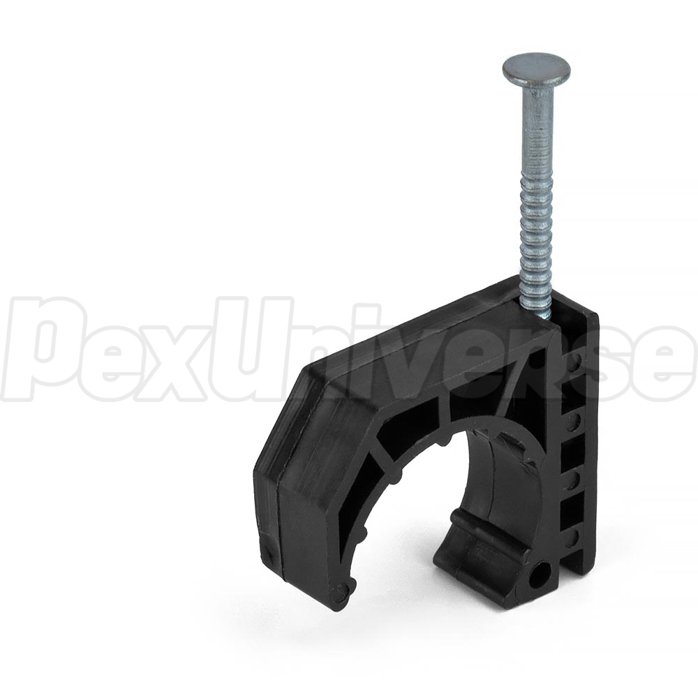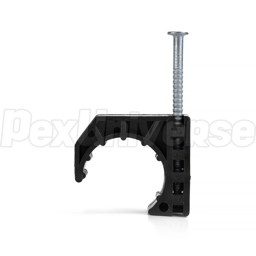 Tube Talons (J-Clamps) with Nail. Compatible with 3/4" PEX tubing, 3/4" copper pipes and 3/4" CPVC pipes. Can be used to secure tubing / piping to wooden surfaces,such as joists, studs, beams, subfloor, etc. Designed to offset the tubing from the mounting surface and eliminate or reduce noise problems associated with thermal changes in the plumbing/heating system. Protruding nail length (surface penetration depth) is 3/4".