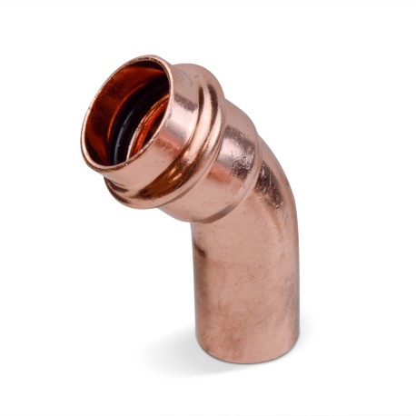 This copper press elbow is used to connect 3/4" copper pipe to 3/4" press fitting outlet at a 45-degree angle.