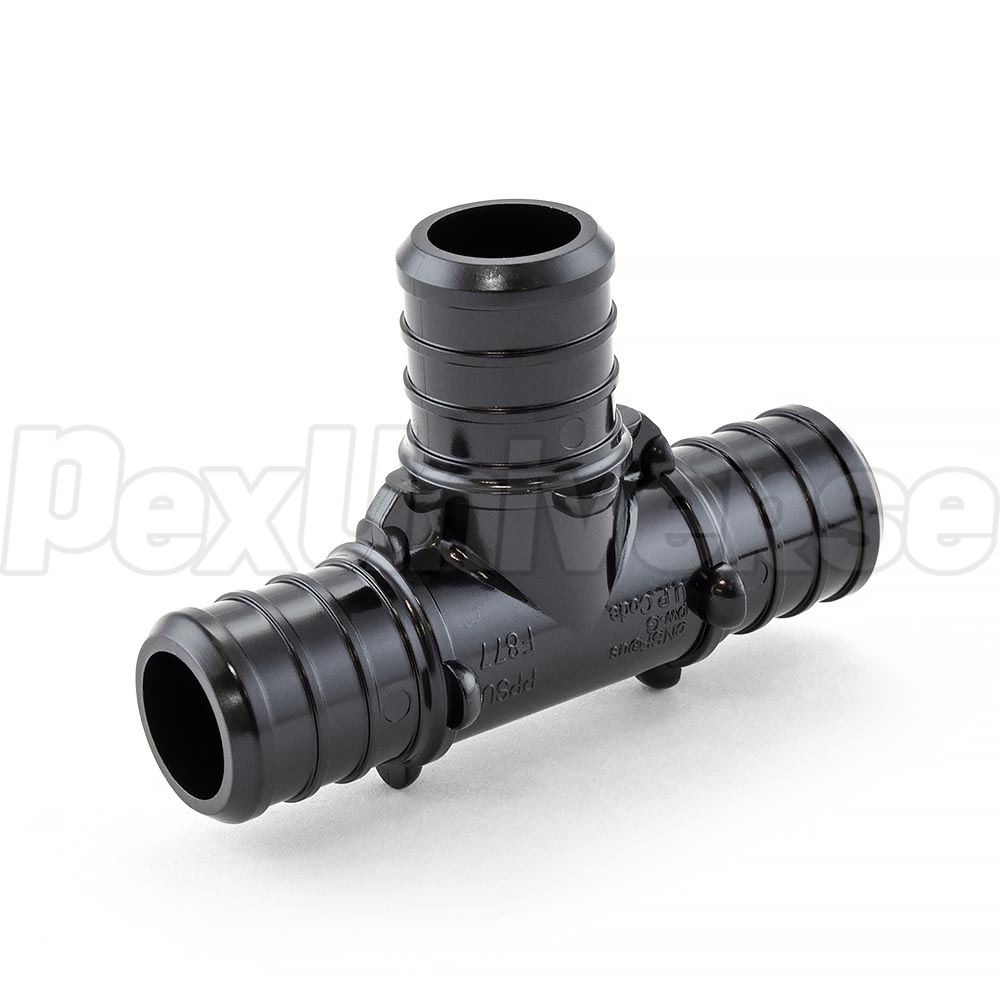 3/4" PEX poly alloy tee connects (3) equal size 3/4" PEX lines together.