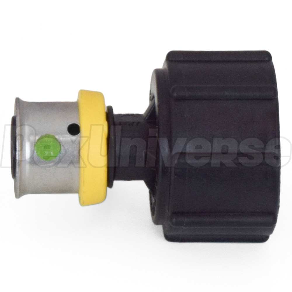 This press adapter connects 1/2" PEX pipe to a 1/2" port on Viega ManaBloc and MiniBloc manifolds using Viega press connection method. Made from lead-free PolyAlloy.