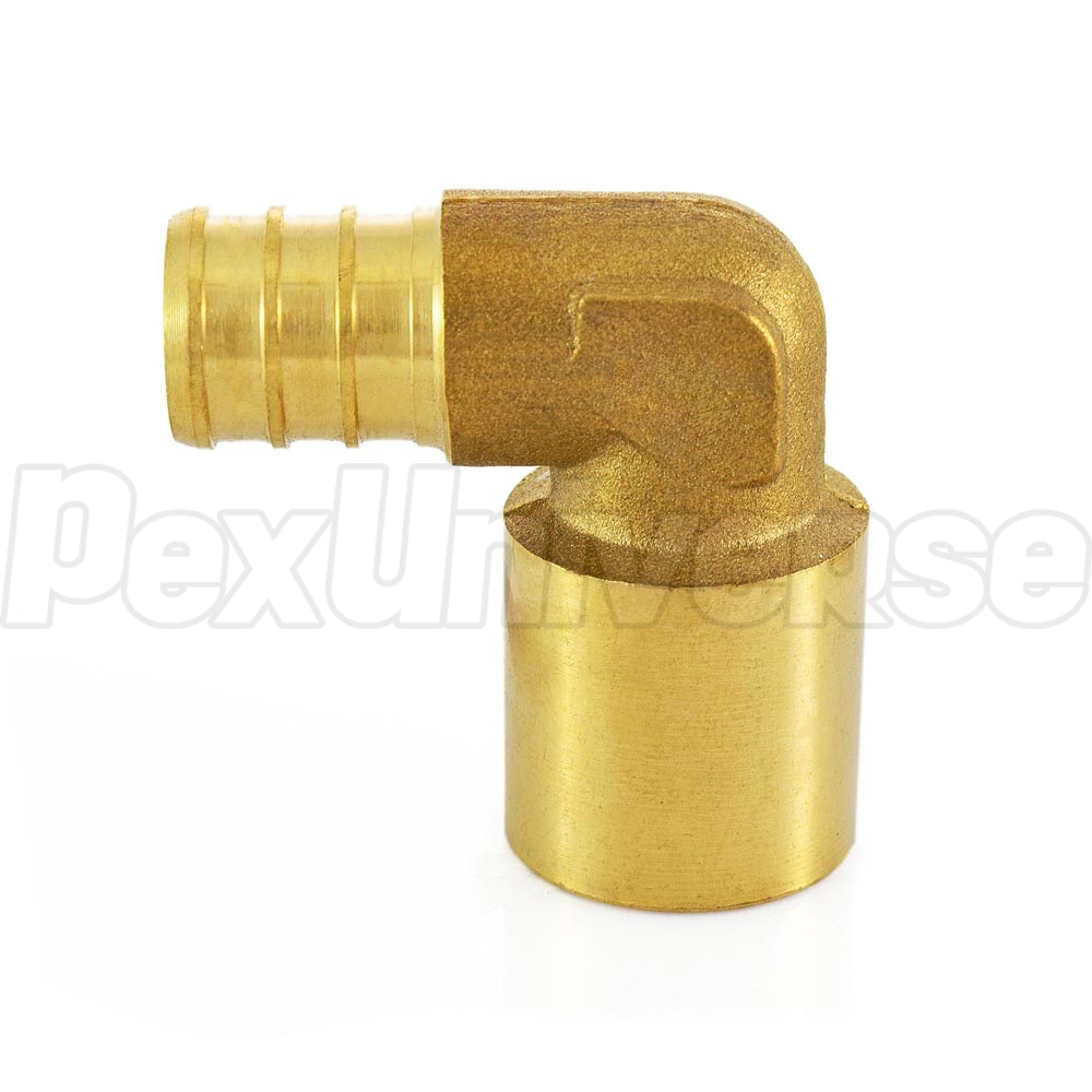 PEX x Copper Fitting (Male Sweat) Elbow is used to transition between PEX tubing and copper fittings at a 90-degree angle.