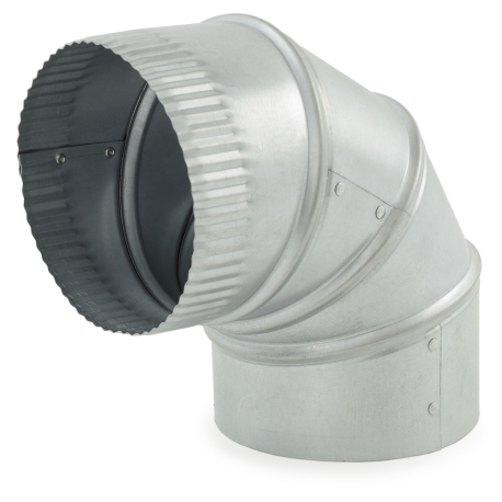 5" x 90-degree adjustable galvanized flue elbow fitting in 26-gauge galvanized steel for use with single-wall galvanized flue pipe (including snap-lock type). Adjustable sections can be rotated to achieve required angle, including the common 45°. Factory-crimped on one end for insertion into a pipe or another fitting. Intended for installation of category I (non-condensing, atmospheric vented) gas and oil-fired boilers, water heaters and furnaces.