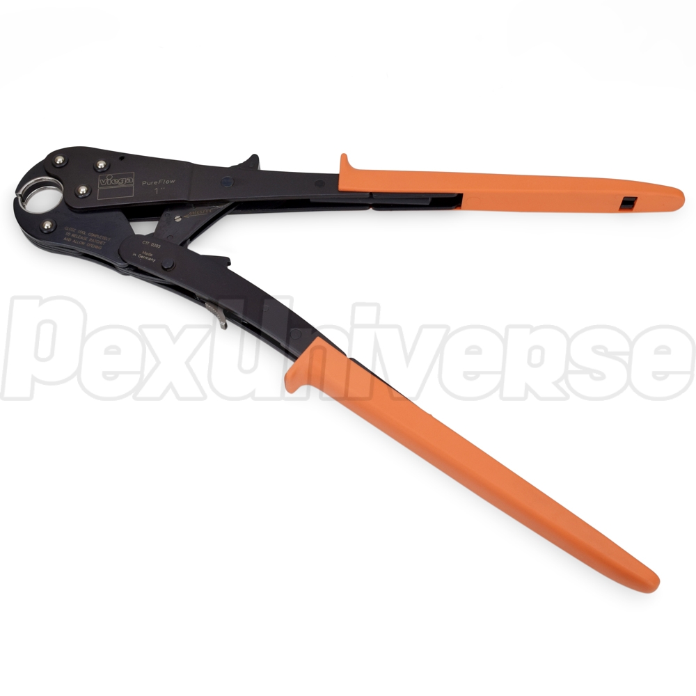 Viega PEX press hand tool for use with 1" Viega press fittings (poly or brass/bronze). Ratcheting design ensures a perfect connection every time.