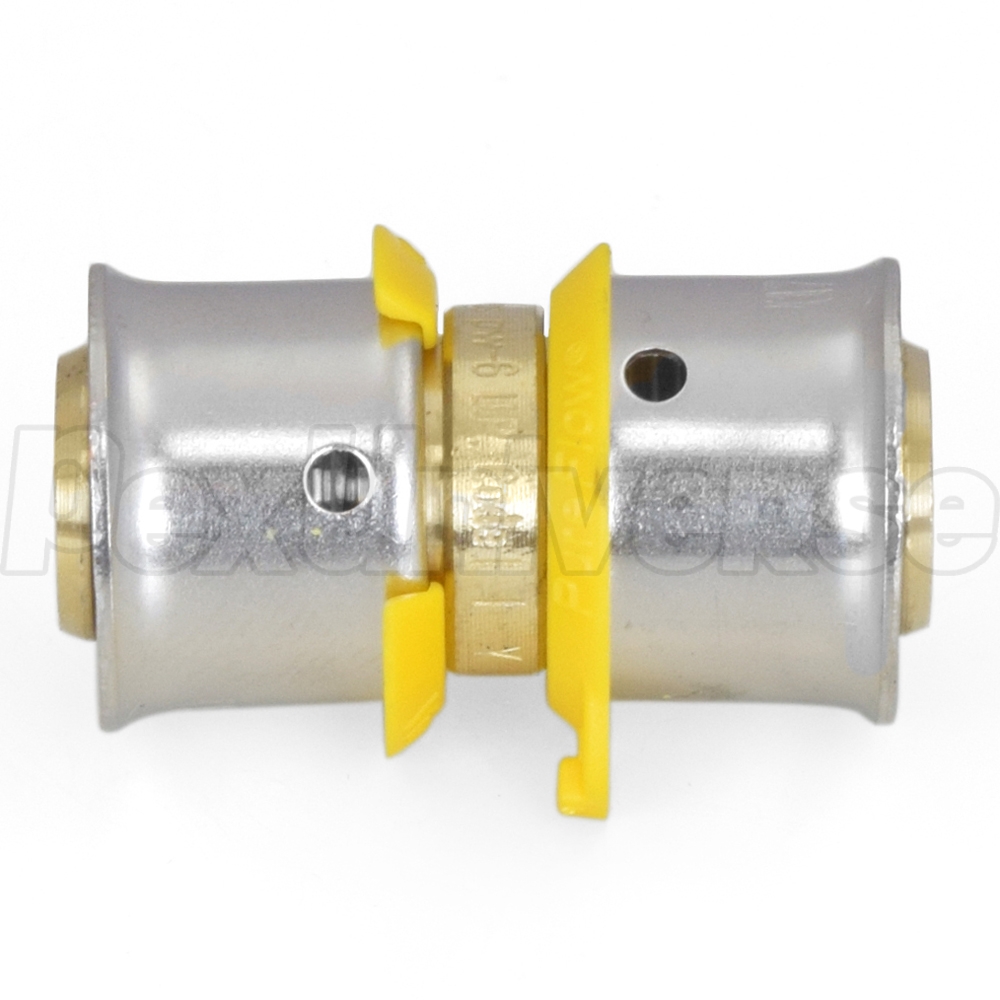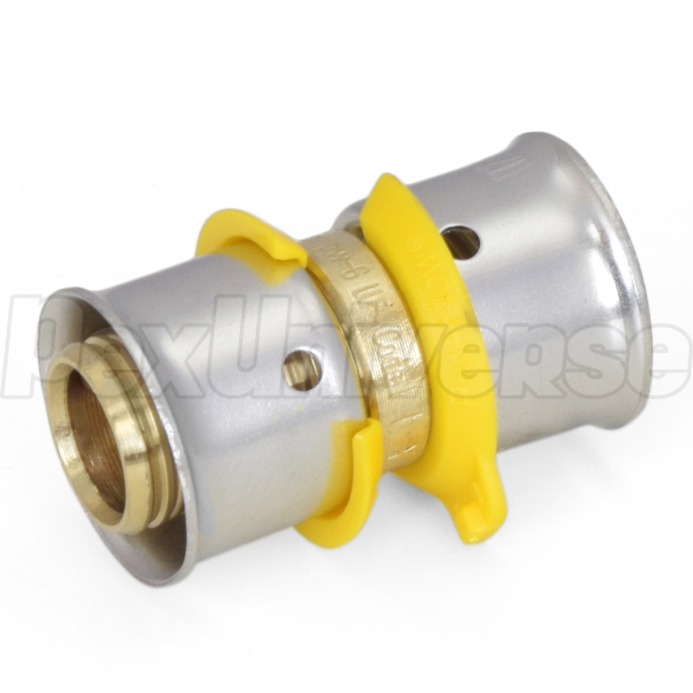 This coupling fitting connects two 1/2" PEX pipes together in a straight line using Viega PEX press connection method. Made from lead-free bronze and approved for potable water use. Compatible with all types of PEX tubing (A, B, C), including Viega oxygen barrier and plumbing tubing, as well as Viega FostaPEX.