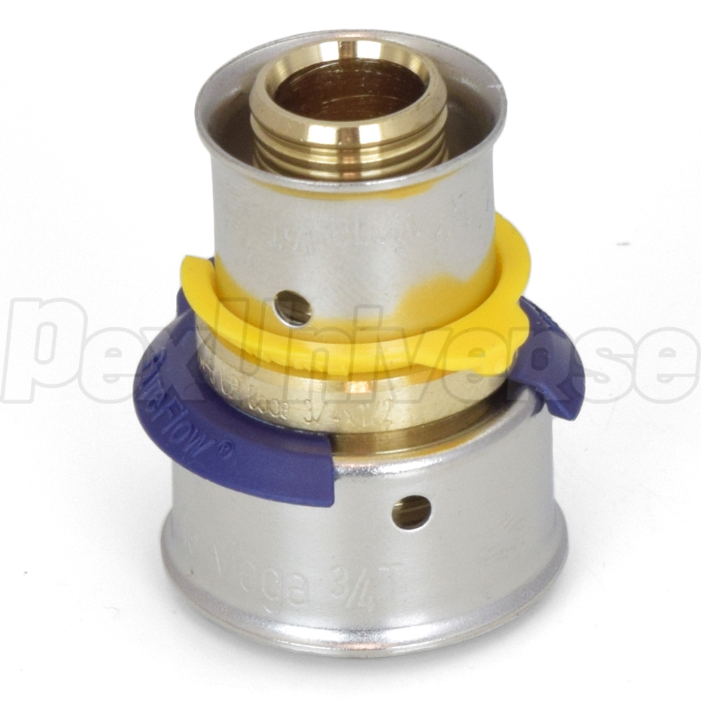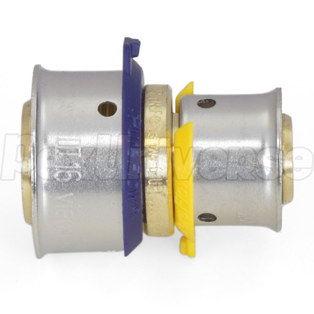 This reducing coupling fitting connects 3/4" to 1/2" PEX pipe in a straight line using Viega PEX press connection method. Made from lead-free bronze and approved for potable water use. Compatible with all types of PEX tubing (A, B, C), including Viega oxygen barrier and plumbing tubing, as well as Viega FostaPEX.