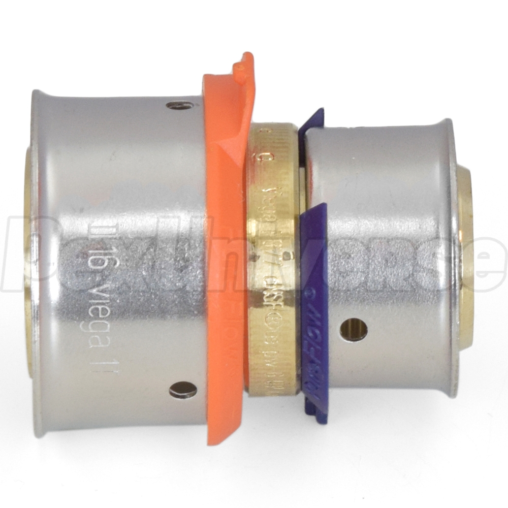 This reducing coupling fitting connects 1" to 3/4" PEX pipe in a straight line using Viega PEX press connection method. Made from lead-free bronze and approved for potable water use. Compatible with all types of PEX tubing (A, B, C), including Viega oxygen barrier and plumbing tubing, as well as Viega FostaPEX.