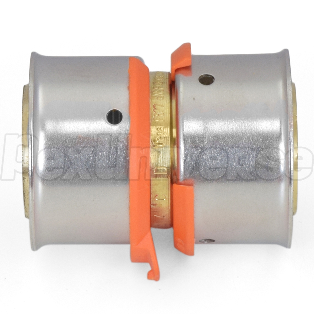 This coupling fitting connects two 1" PEX pipes together in a straight line using Viega PEX press connection method. Made from lead-free bronze and approved for potable water use. Compatible with all types of PEX tubing (A, B, C), including Viega oxygen barrier and plumbing tubing, as well as Viega FostaPEX.