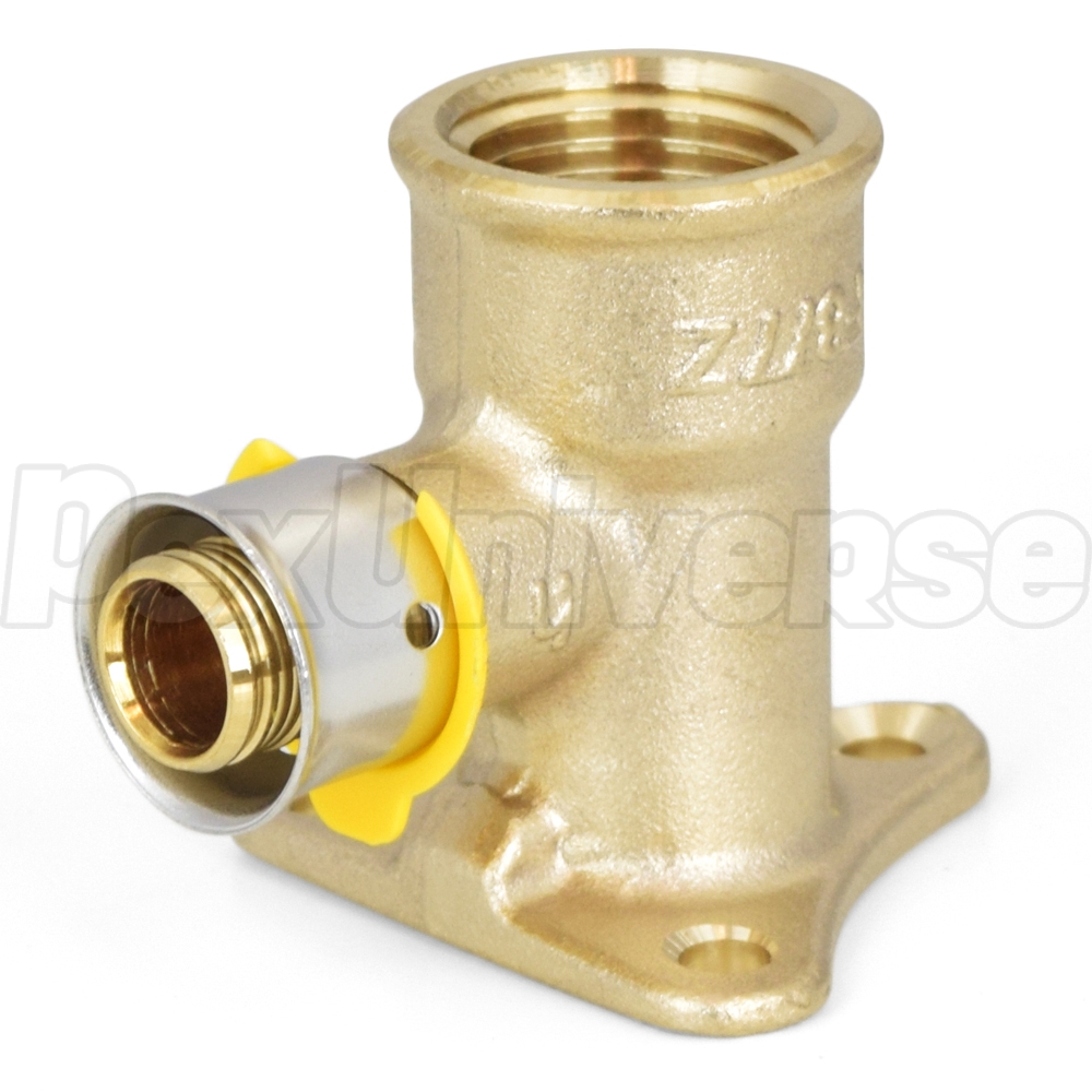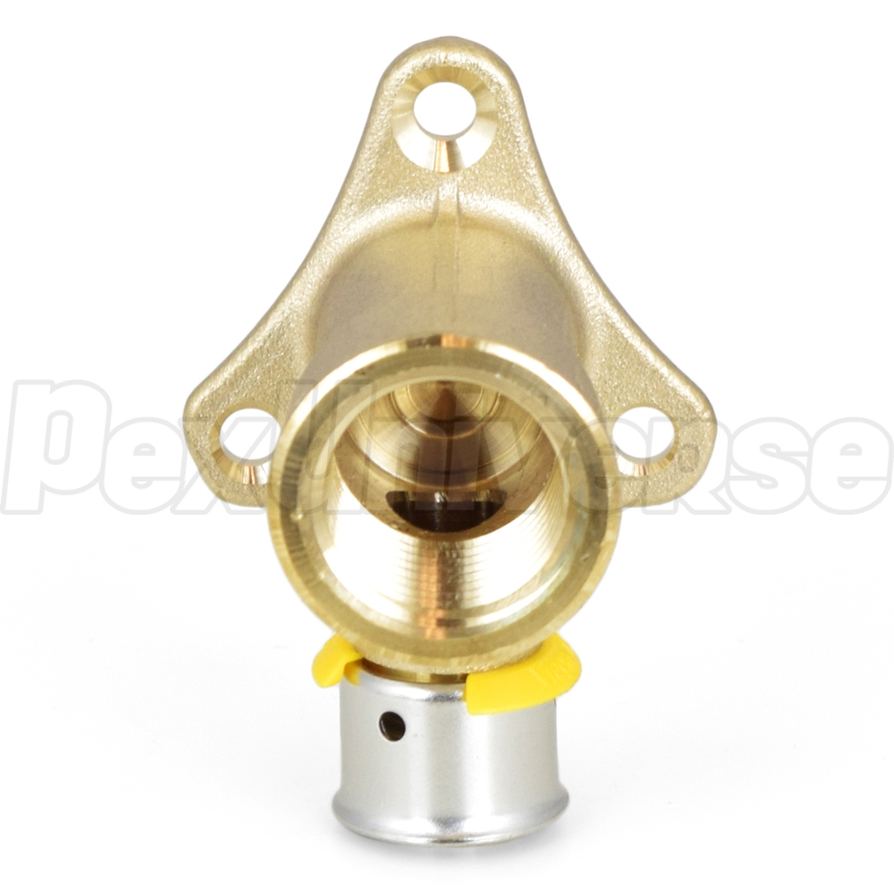 Viega 90-degree drop ear elbow with 1/2" PEX press inlet and 1/2" female NPT threaded outlet. Comes with mounting ears. Compatible with all types of PEX and Viega FostaPEX. Suitable for connecting standard 1/2" shower arm or shower jet. Lead-free, approved for potable water use.