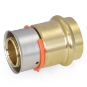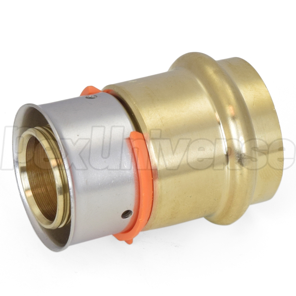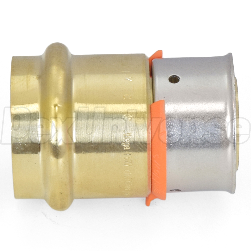 This adapter fitting connects 1" PEX pipe to 1" copper pipe in a straight line using Viega PEX press and ProPress connection methods. Made from lead-free bronze and approved for potable water use. Compatible with all types of PEX tubing (A, B, C), including Viega oxygen barrier and plumbing tubing, as well as Viega FostaPEX.