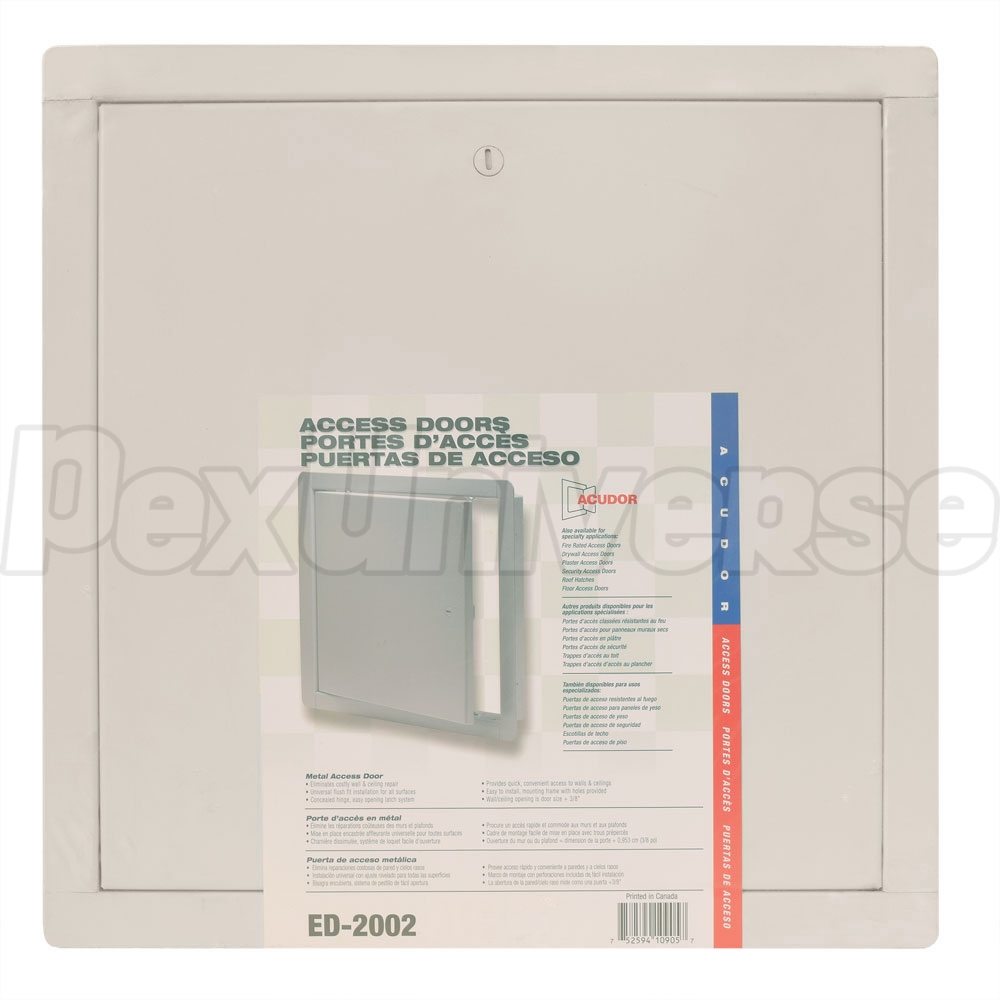 Acudor ED-2002 series, 24" x 24" metal access door suitable for wall or ceiling installation on drywall, tile or masonry. Flush installation, concealed hinge and a cam latch type lock make this door an ideal choice in plumbing, mechanical or electrical applications (where allowed by code) in residential and commercial buildings.
