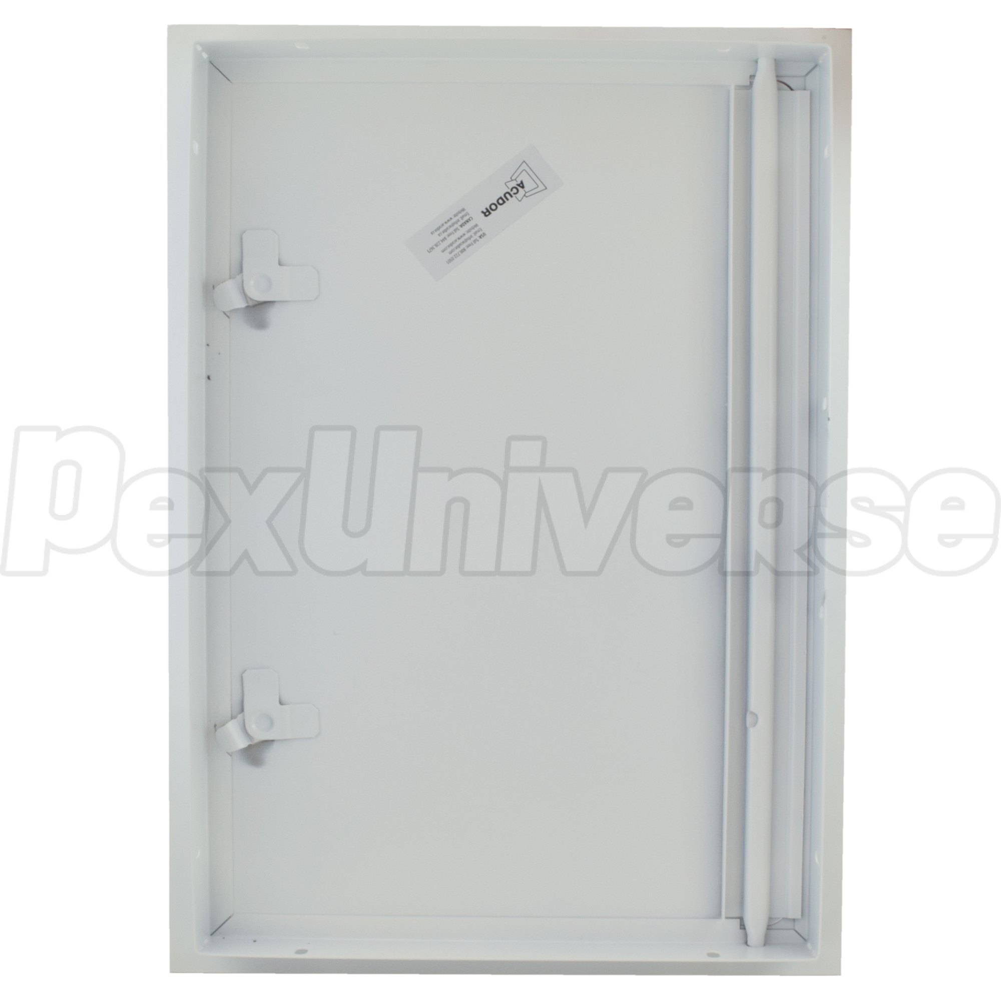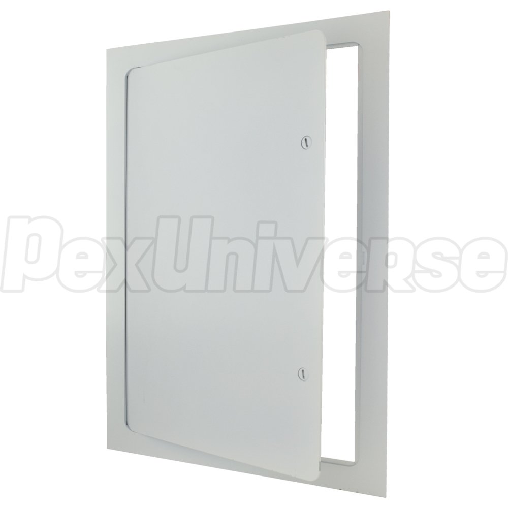 Acudor UF-5000 series, 12" x 24" metal access door suitable for wall or ceiling installation on drywall, tile or masonry. Flush installation, concealed hinge and a rounded corners panel with cam latch type lock make this door an ideal choice in plumbing, mechanical or electrical applications (where allowed by code) in residential and commercial buildings.