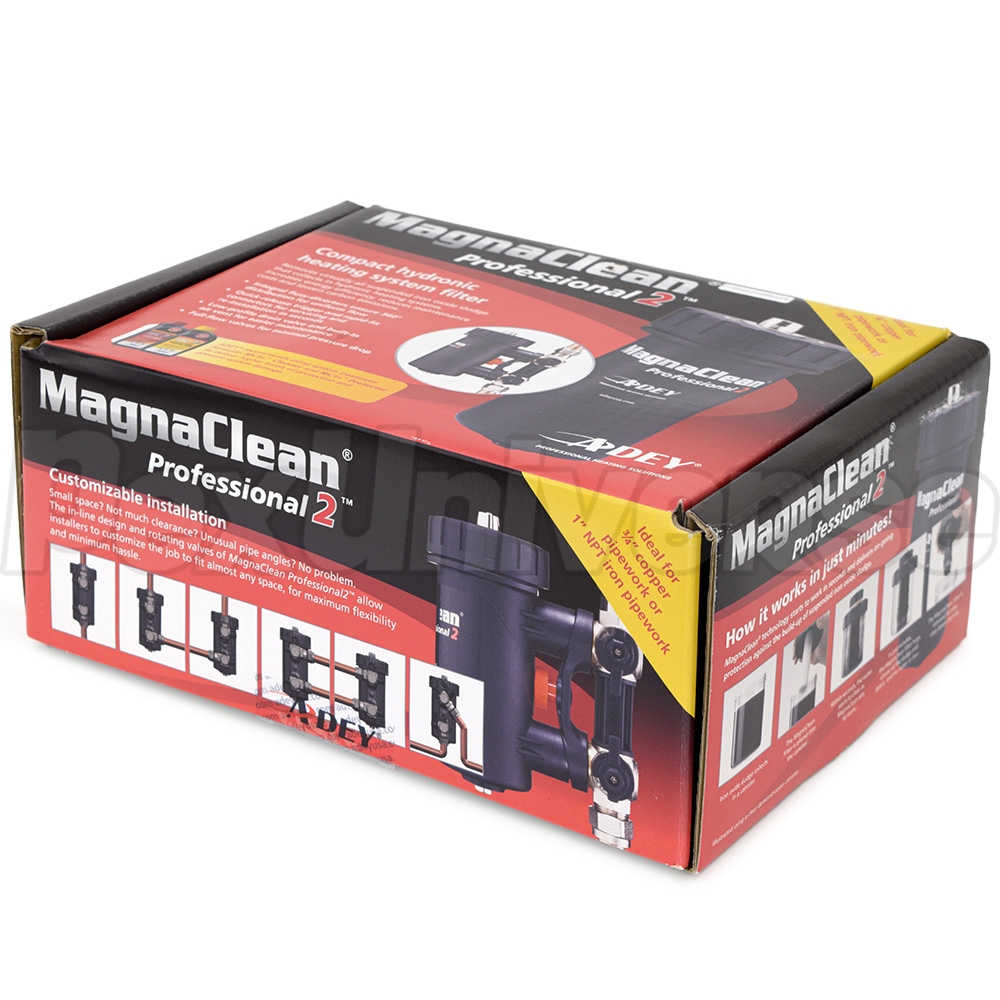 Adey MagnaClean Professional (Pro) 2 model is a magnetic boiler filter (rust and dirt separator) designed to capture and eliminate magnetite particles in heating system's water, allowing to minimize heating bills and system maintenance. Pro 2 is Adey's best selling model and is designed for majority of residential heating systems on the market - whether they're baseboard/radiator type, radiant floor heat or any other.