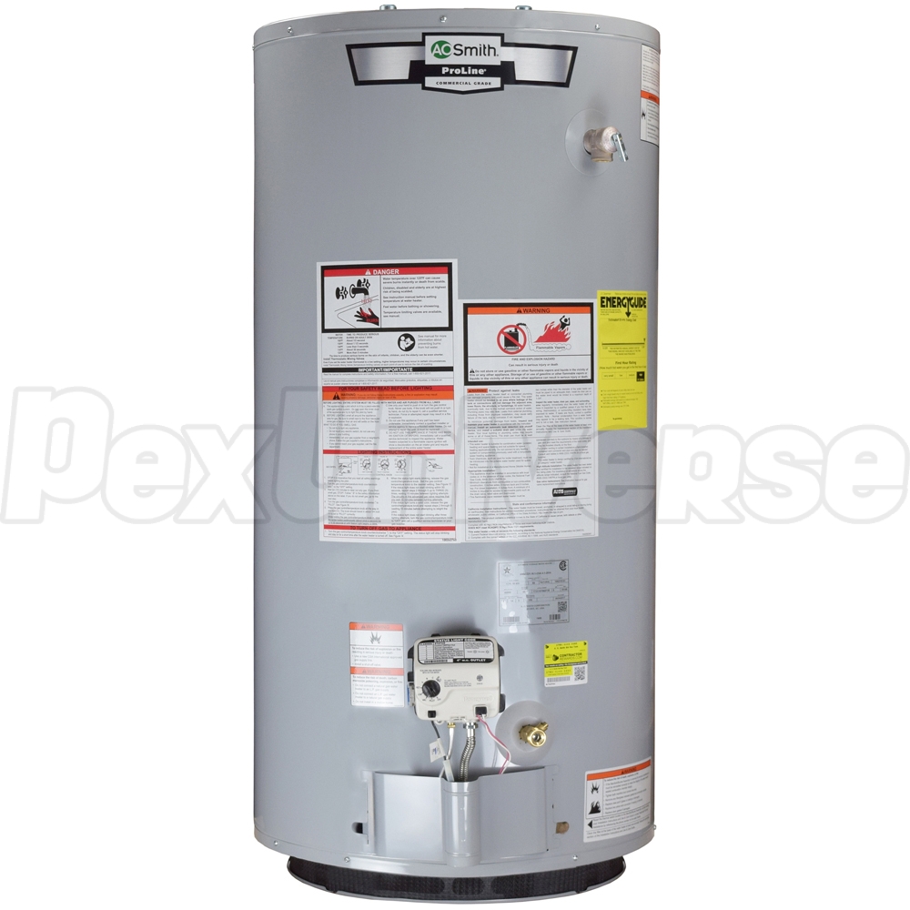 AO Smith ProLine XCG-50-LP model is a 50-gallon, propane (LP) atmoshperic vent residential water heater with 10-year warranty.