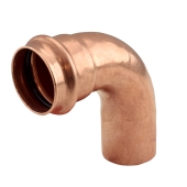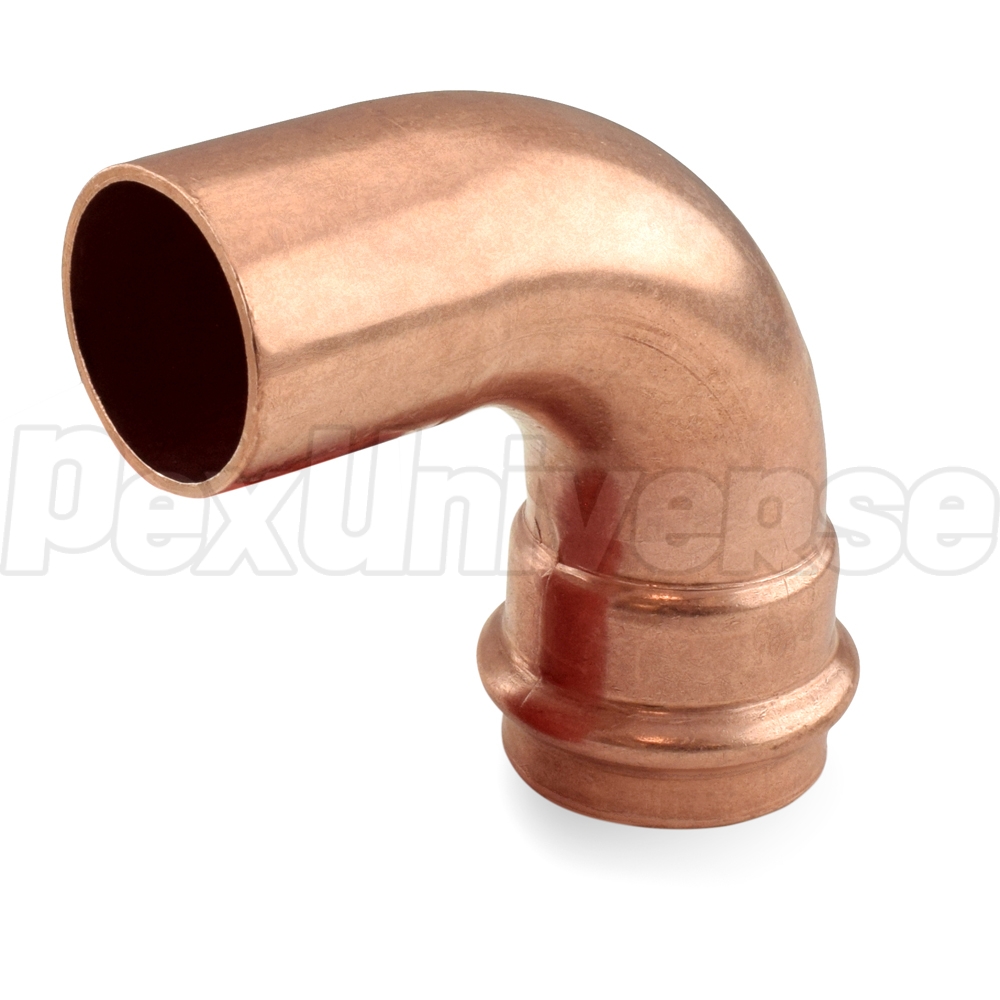 This press elbow fitting connects 1-1/2" copper pipe to 1-1/2" press fitting outlet at a 90-degree angle.