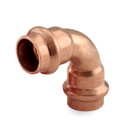 This press elbow fitting connects two 1/2" copper pipes together at a 90-degree angle.
