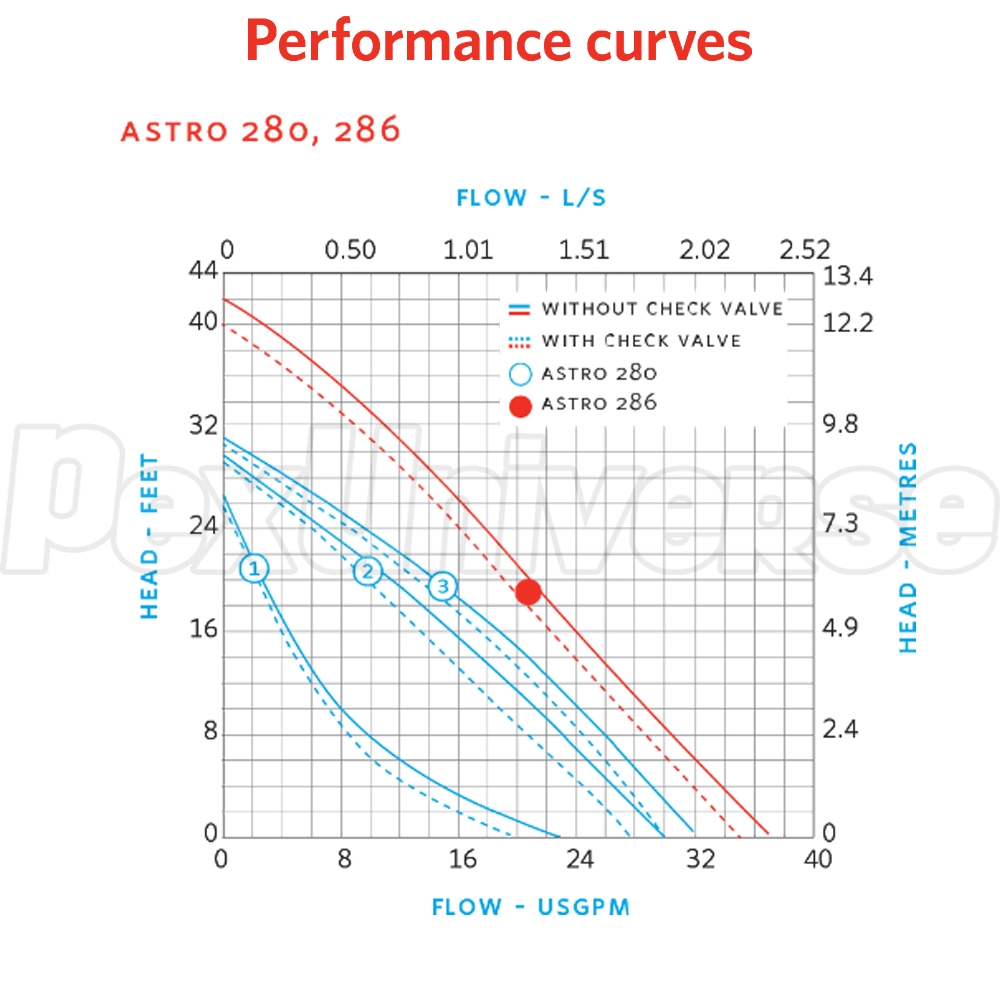 • Component materials: Noryl impeller, ceramix shaft & bearings, EPDM gasket