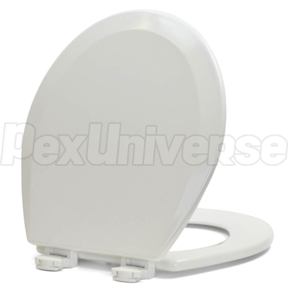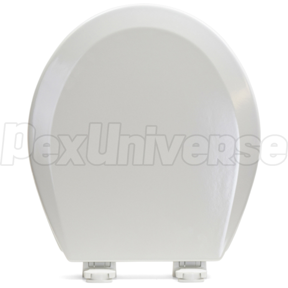 Basic molded wood Economy style ROUND toilet seat in white color.