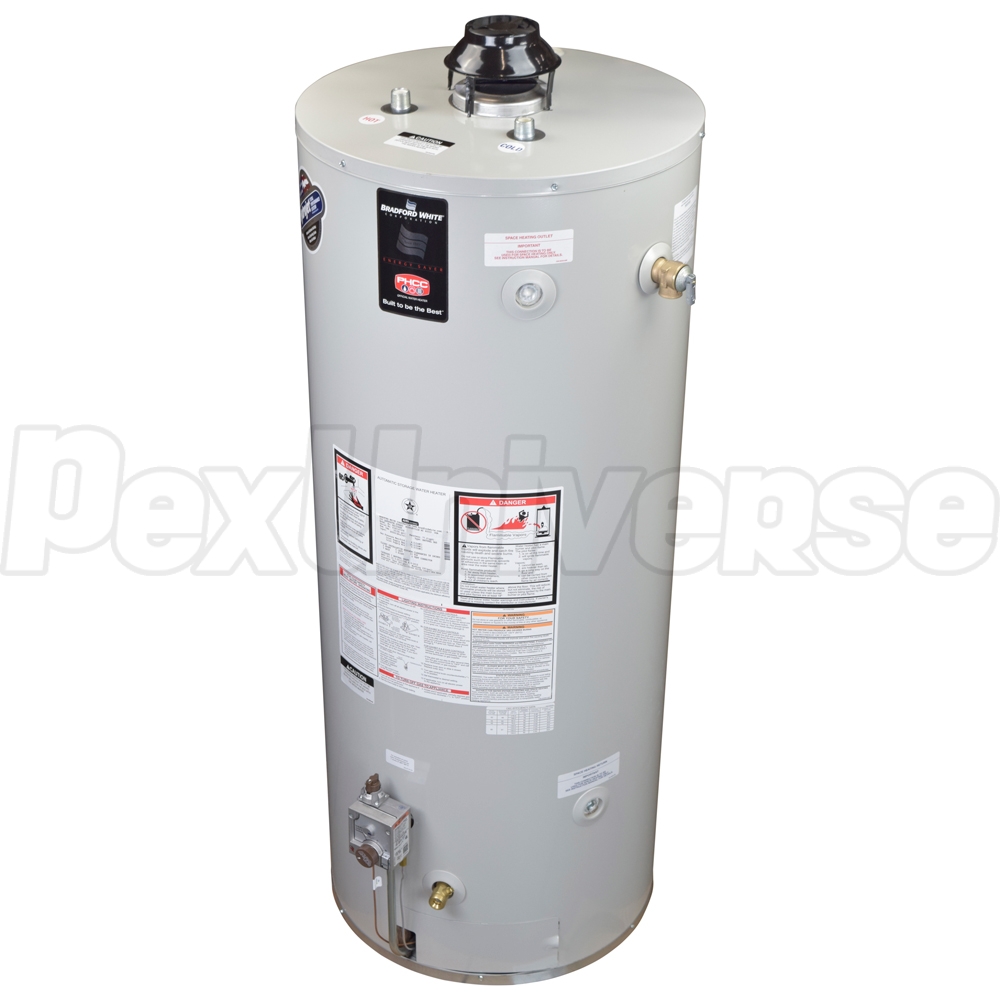 Bradford White RG230T6N model is a 30-gallon natural gas (NG), standard atmospheric vent residential water heater with 6-year warranty. T&P valve included.