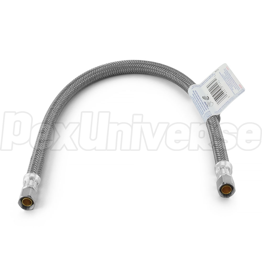 BrassCraft 20” long polymer-coated Water Supply Connector to Dishwasher system. Corrosion resistant fibers bend freely without kinking or crimping. Speedier and easier installation.