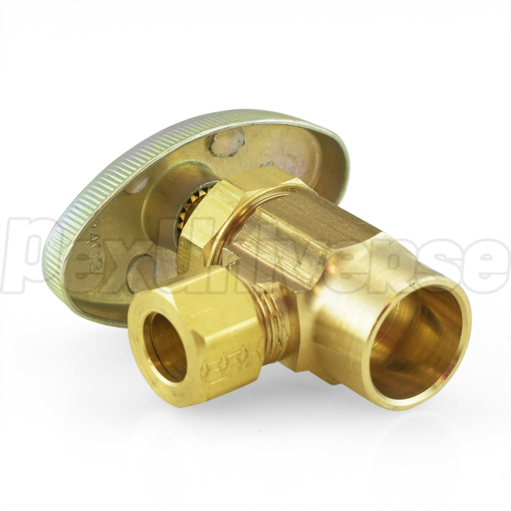 1/2" Sweat x 3/8" OD Compr. Angle Stop Valve (Multi-Turn), Rough Brass, Lead-Free