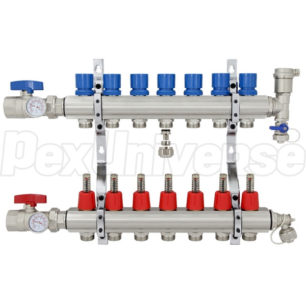 (1) Supply radiant manifold w/ (7) flow indicators and (7) outlets for PEX tubing.