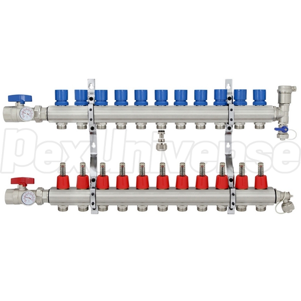 (1) Supply side radiant manifold w/ (11) flow indicators and (11) outlets for PEX tubing.